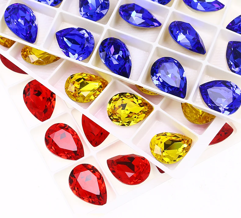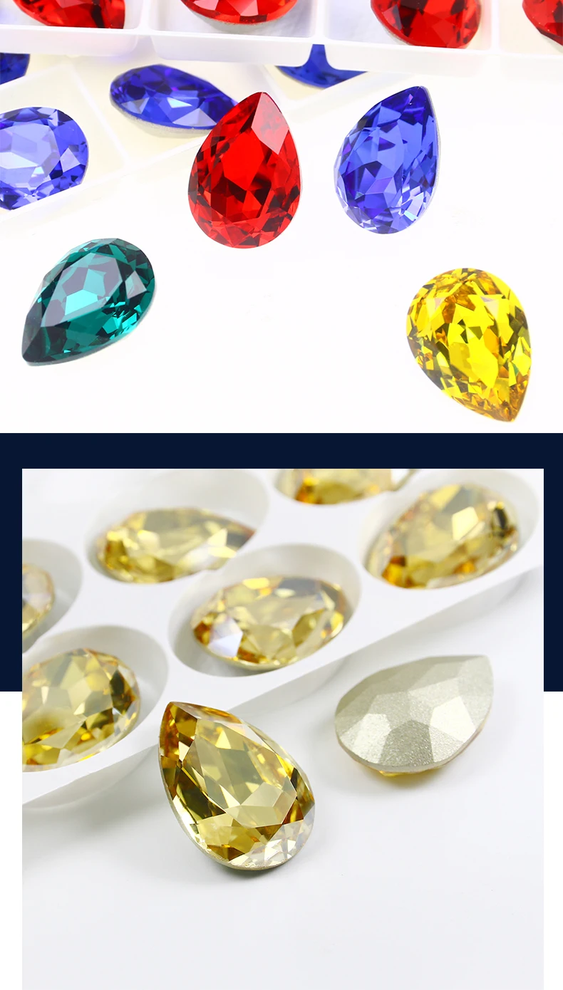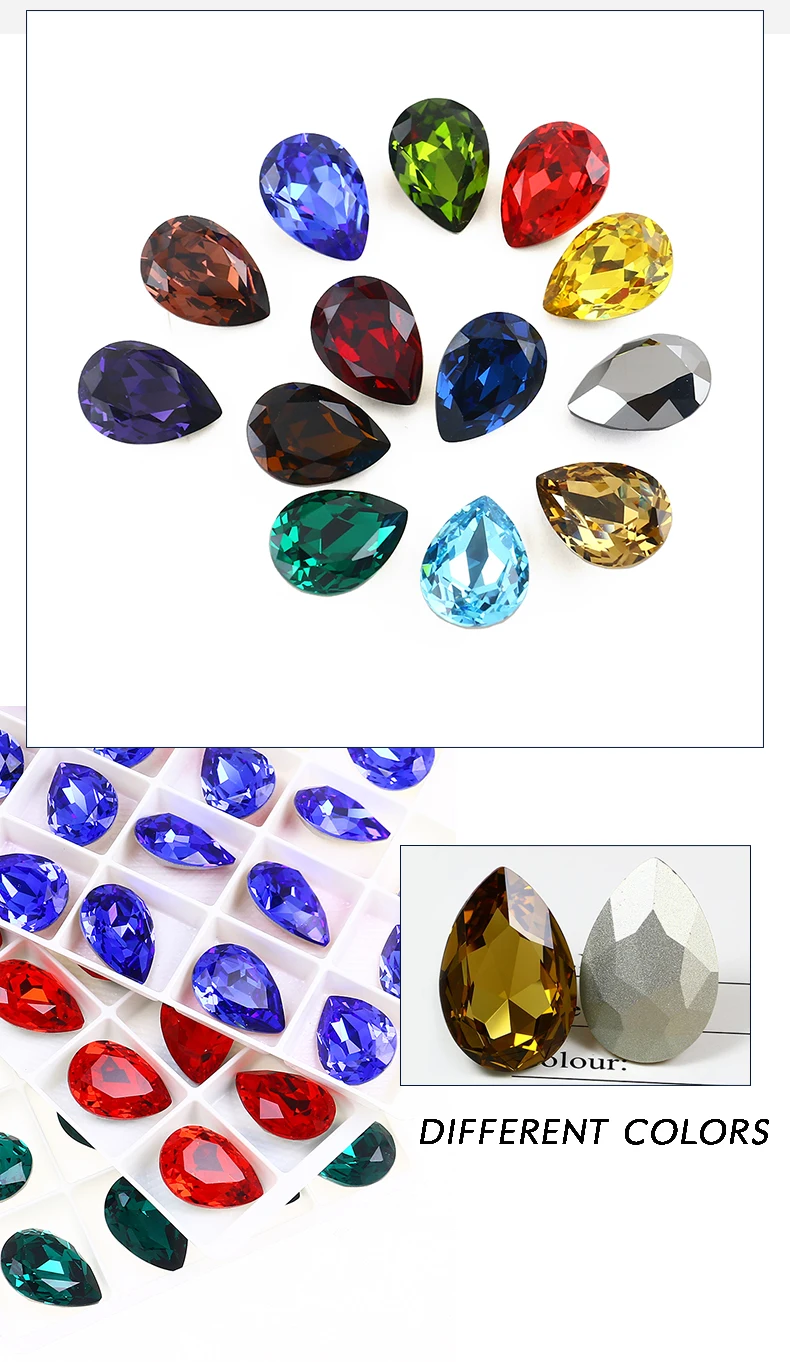 Glitter Crystal Teardrop Rhinestone, Pointback, Fancy Stone, Drop Strass Diamond for Nailart Decorations, Glass Gems Applique
