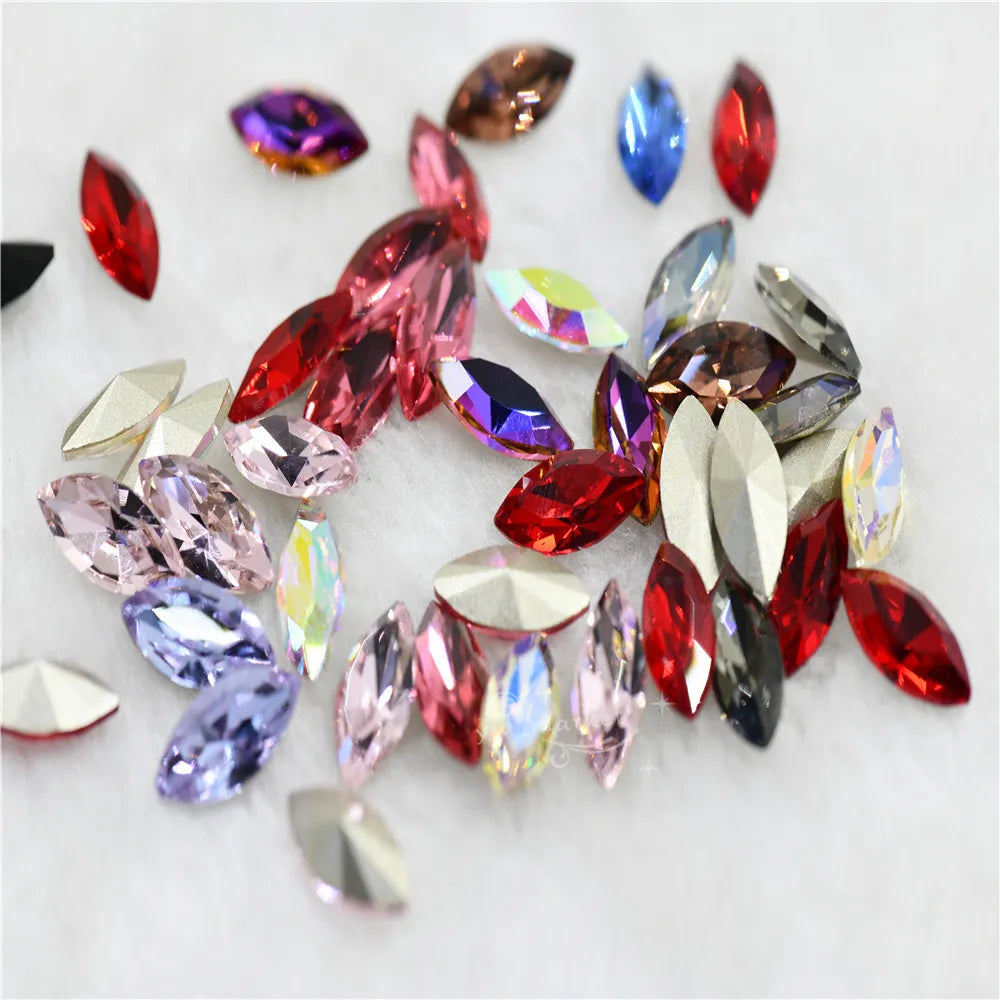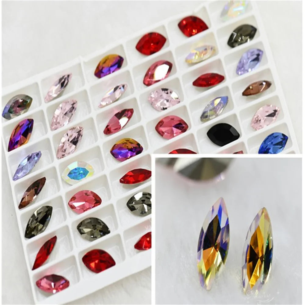 k9 Crafts beads Jewelry Accessories Navette shaped K9 Glass Glue On Rhinestones appliques 7x15mm