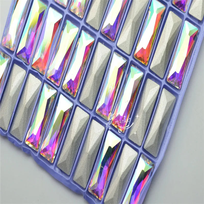 Baguette Pointback Fancy Stone Crystal AB Color Glass Crystals 7x21mm 10x30mm
