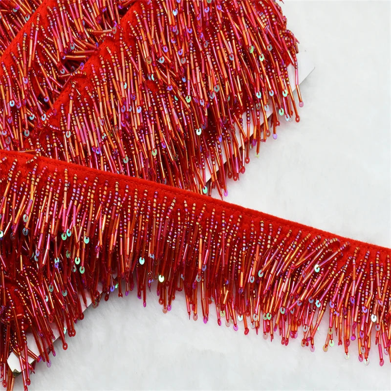 1 Yard 4cm high quality layered Beaded Tassel Fringe for costumes dress crafts sew on DIY Accessories Home Textile Dance