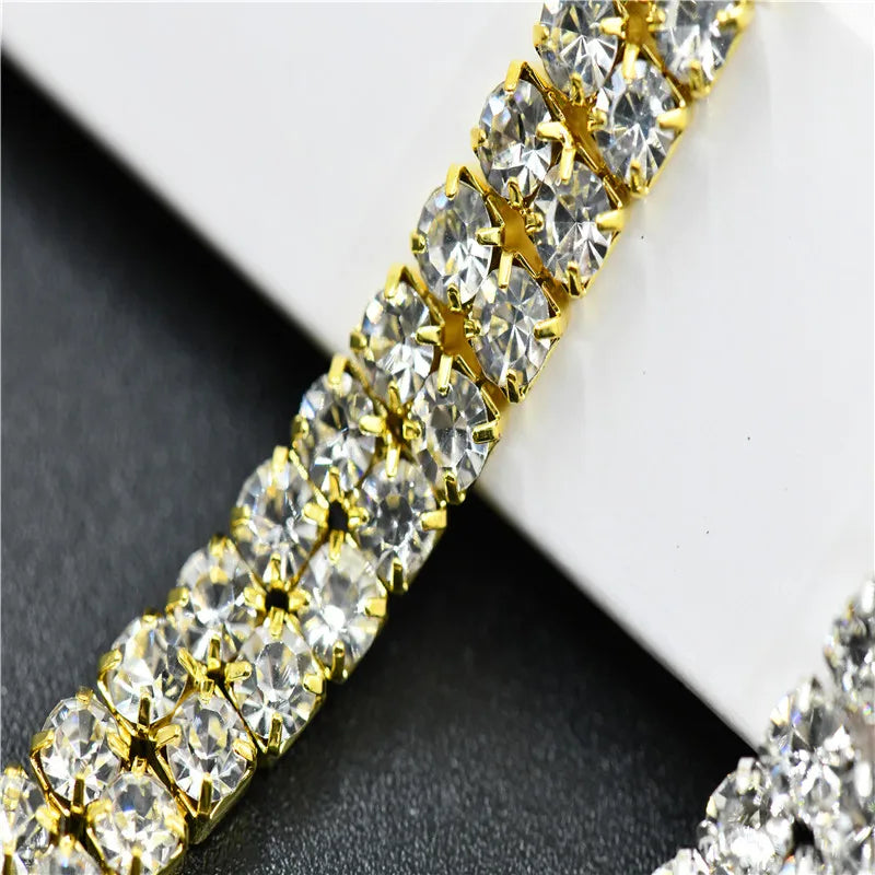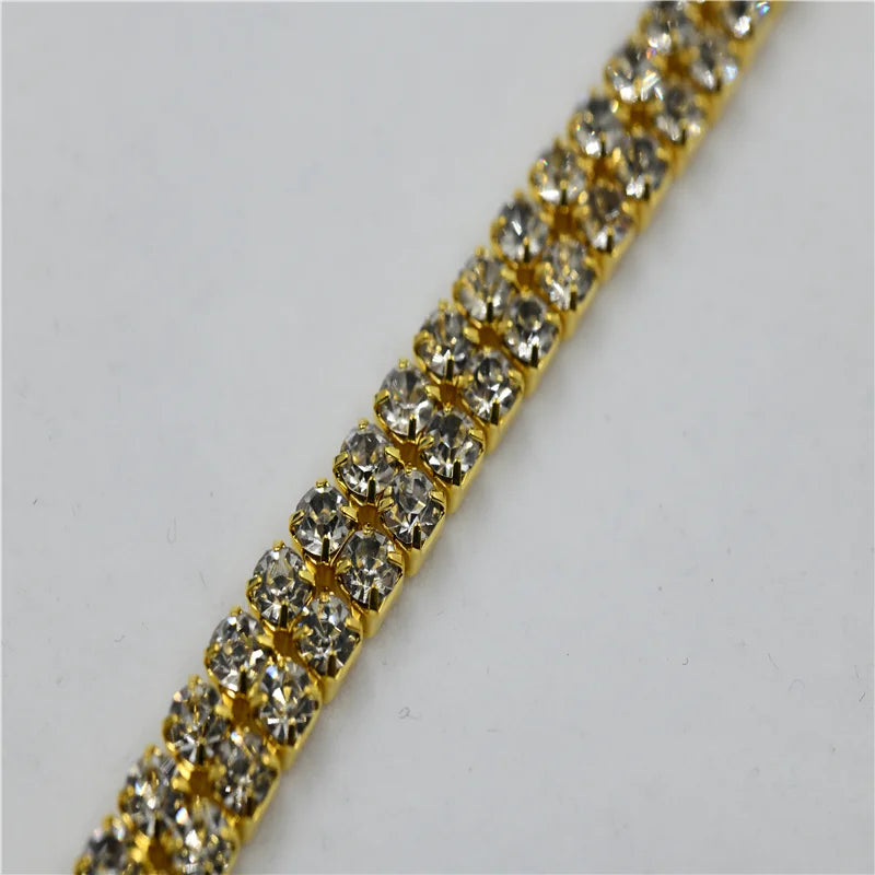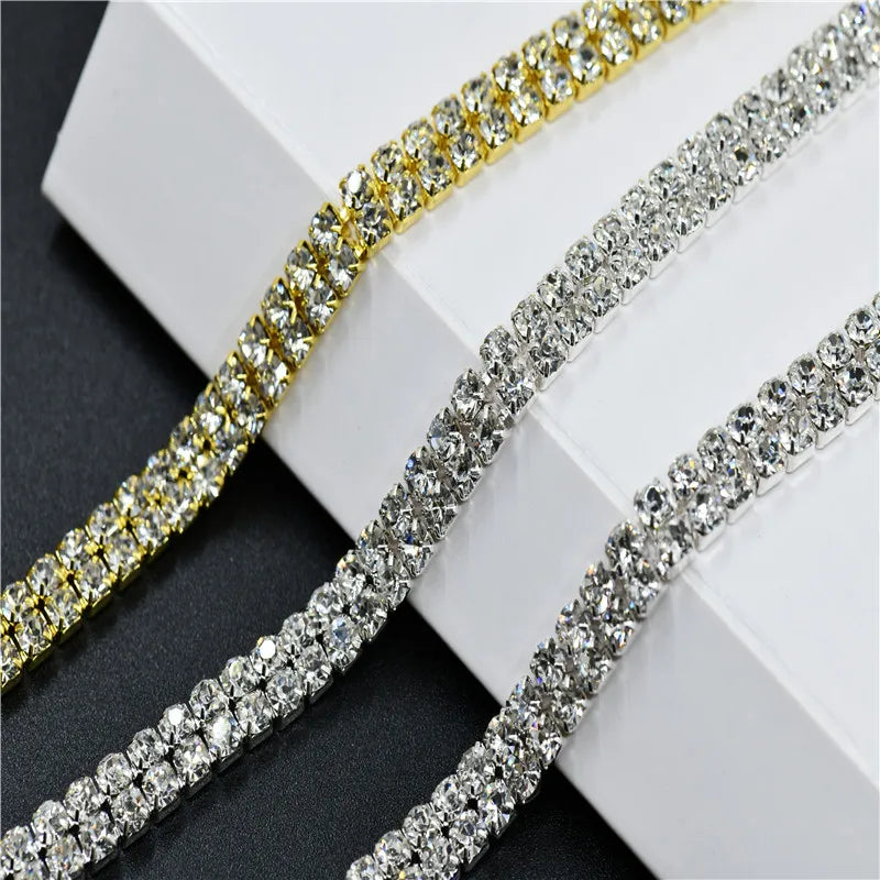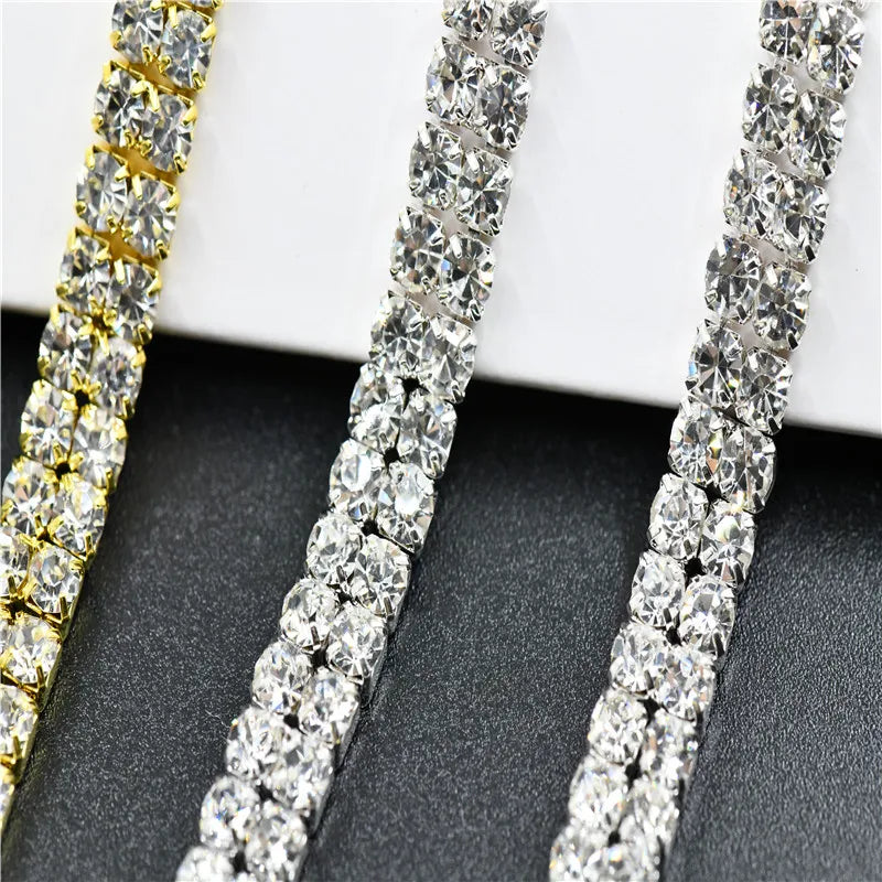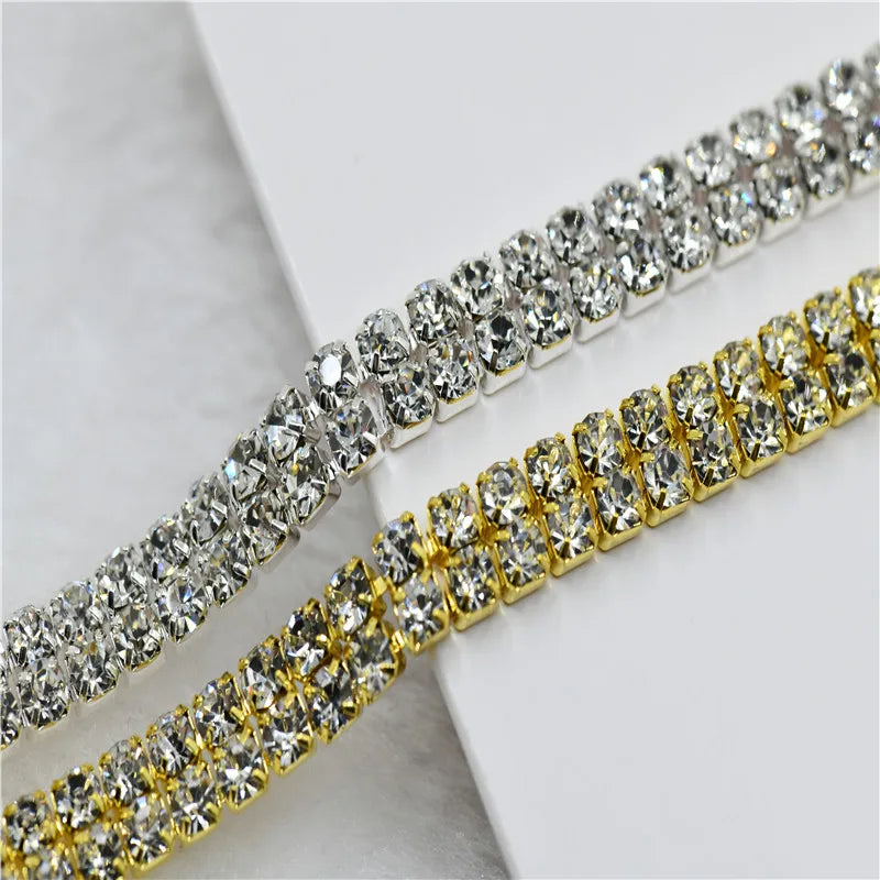 10 yards Glitter 2 rows Rhinestones chain AAA quality silver gold claw Wholesale Wedding decoration bride Dress sewing trim