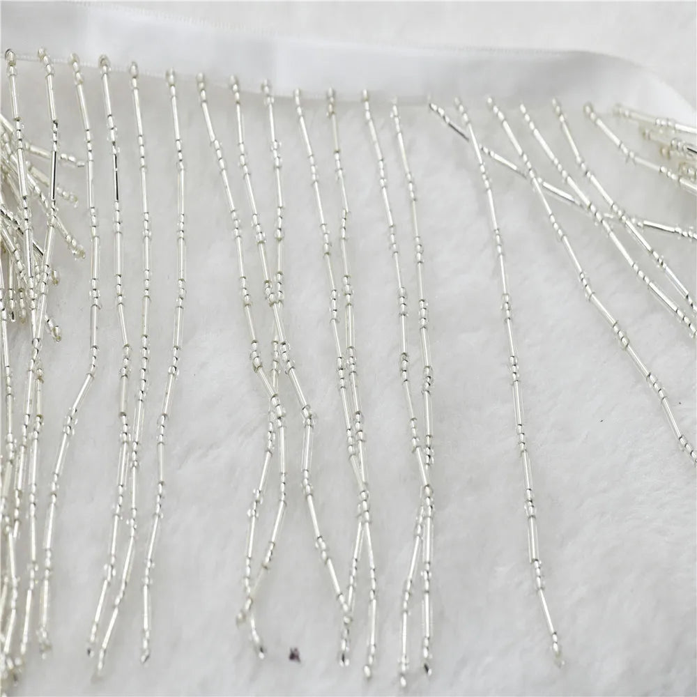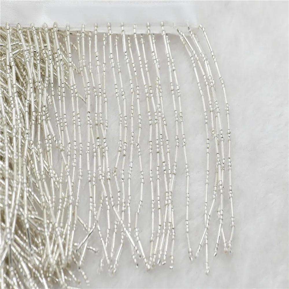 10cm glass Beaded Fringe Lamp Costume Trim Crafts 1 yard silver color