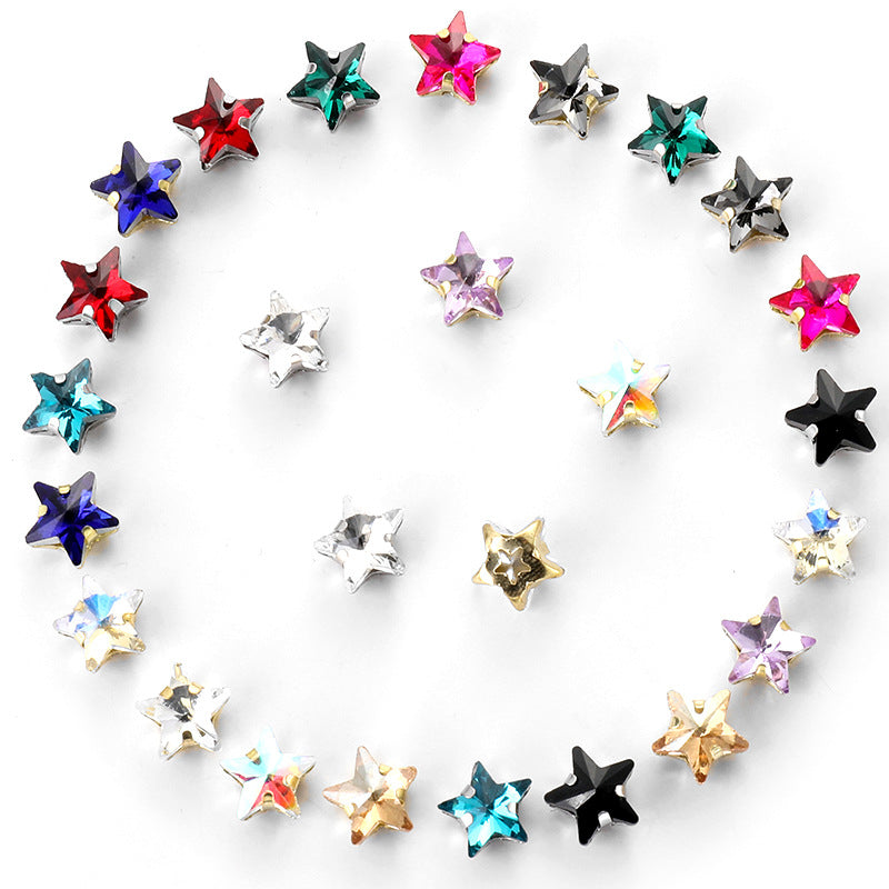 10mm Star Crystal Plated Rhinestone Glue On Stars Multiple Color Glass Beads Jewelri Make 100pcs