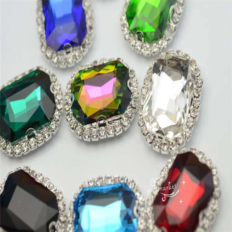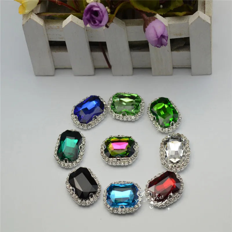 18x25mm rhinestones Apparel stones with silver claw Rectangle Sew on For Garment accessories shoes bacgs diy