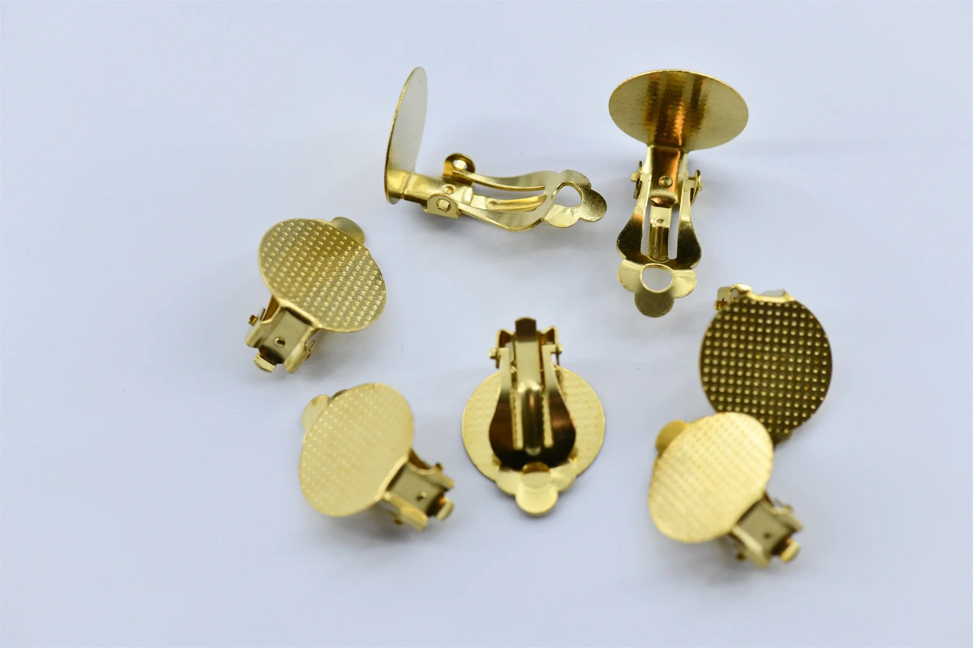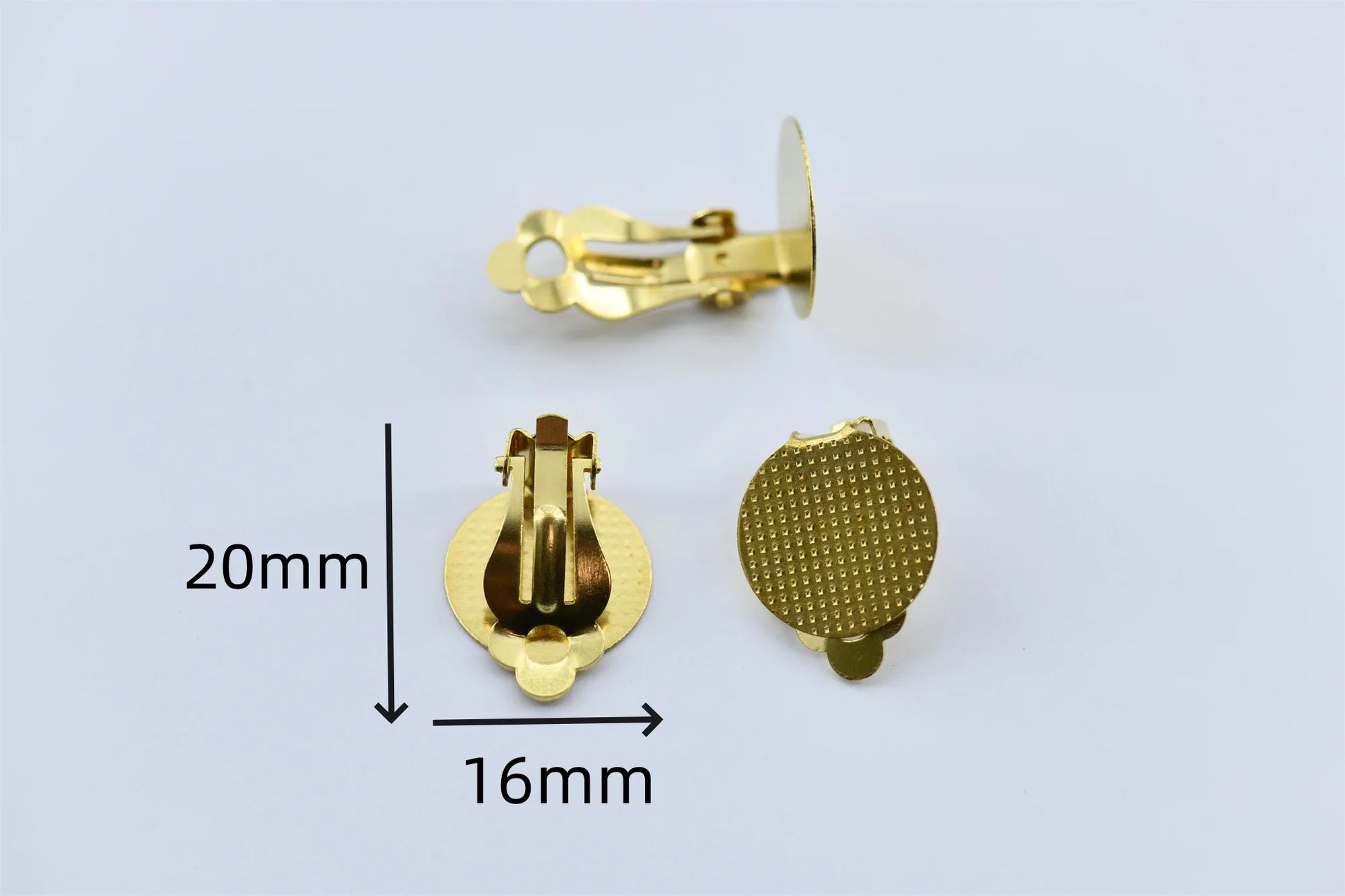 30pcs 16x20mm Kirsite Round Flat Ear Clip brass Base Cabochon Bezel Tray Earrings Clips For Non Piercing Earrings Accessories