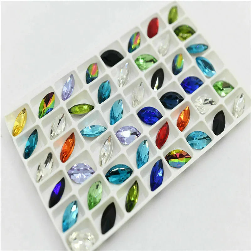 4x8mm 3x6mm 5x10mm small size navette stones glass point back jewels beads DIY Crafts Fancy Stones For Gym Suit Garment