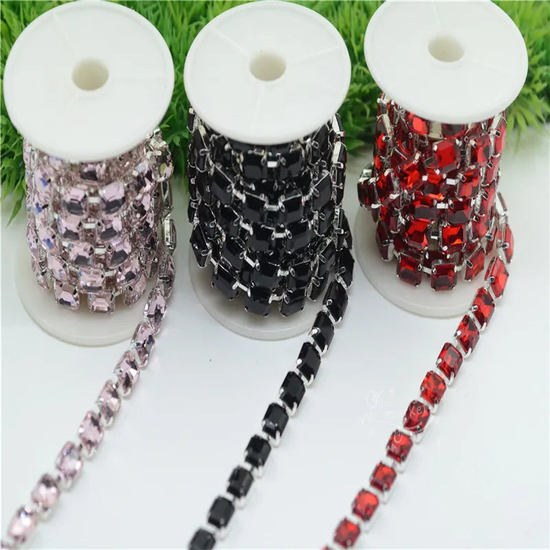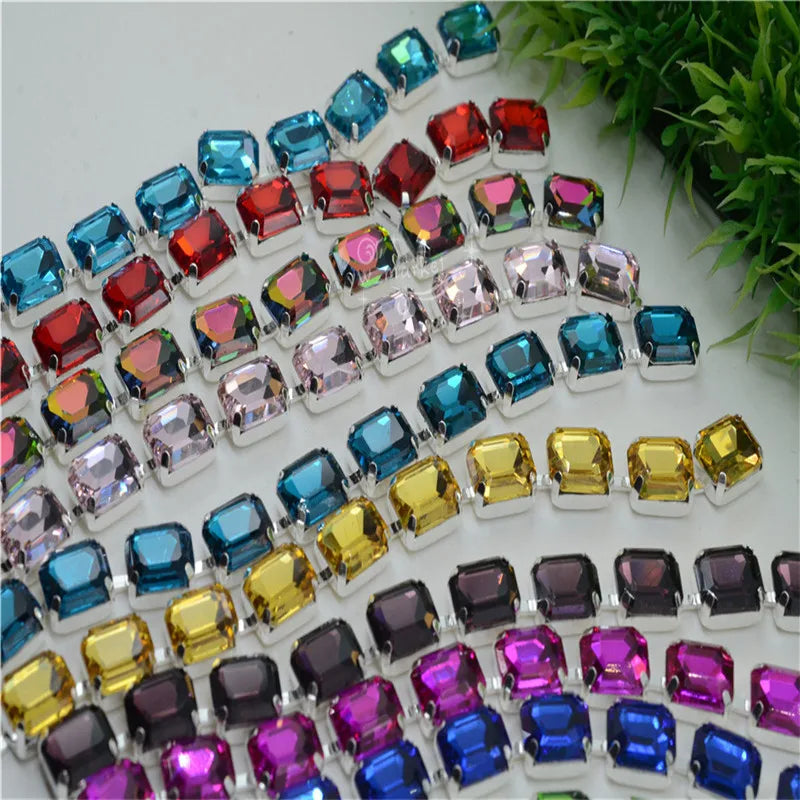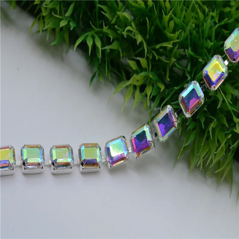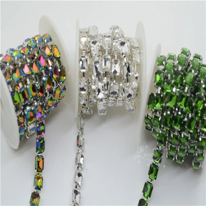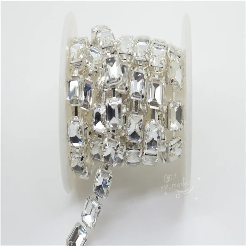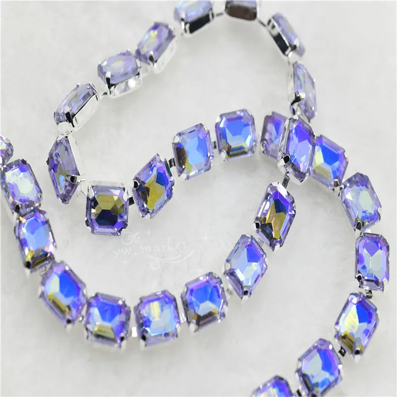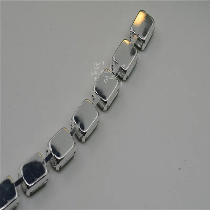8x10mm Crystal Rhinestones Rectangle Chain Linked Silver Sew on Quite Personality cuentas ring
