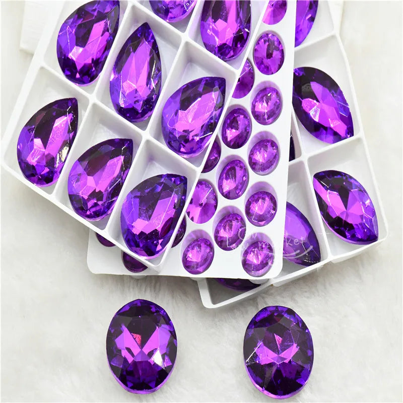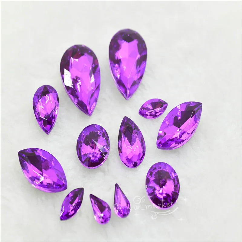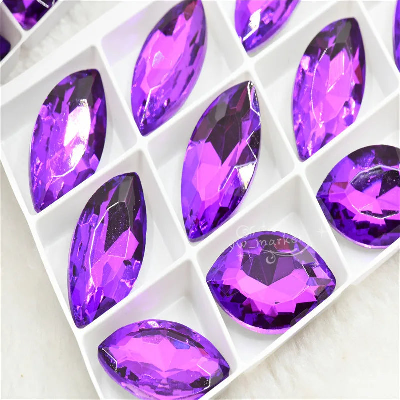 Beads For Jewelry Making Purple Strass Crystal Teardrop navette glass Stones Clothing Crafts