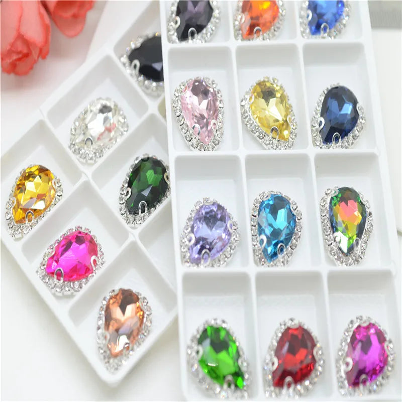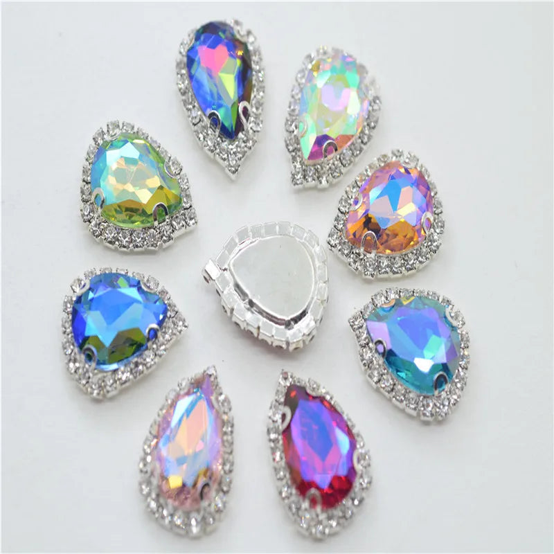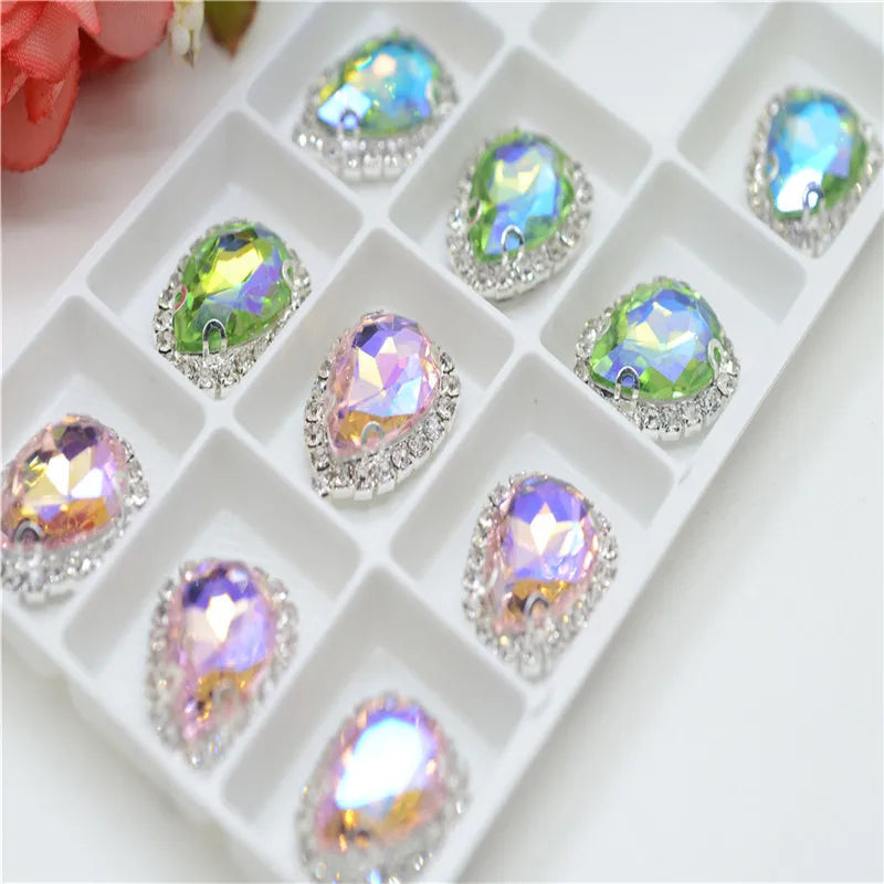 costume crafts sew on Rhinestones Teardrop silver claw Glass Crystal wedding dress bellydance clothes