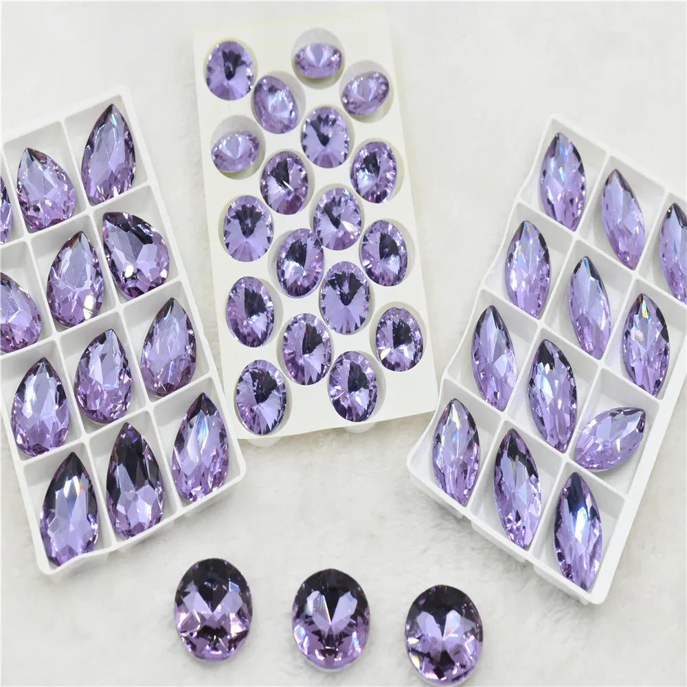 crystal purple rhinestone crystal appliques glass pointback DIY BEAD jewelry Needlework accessories