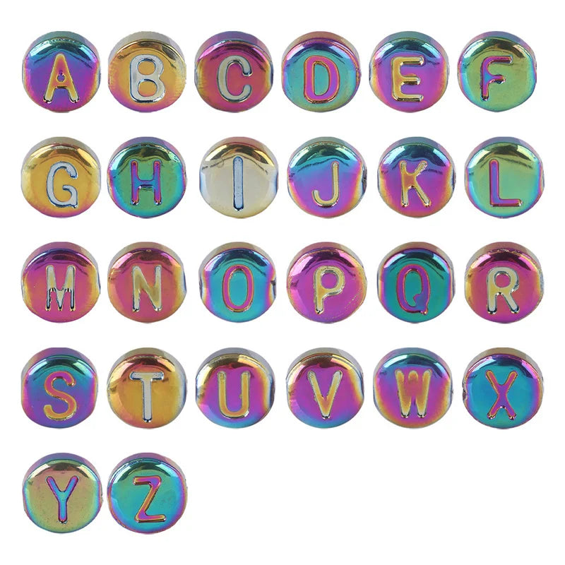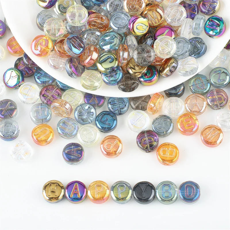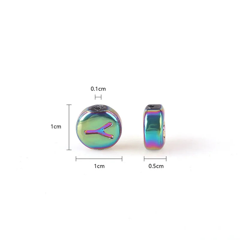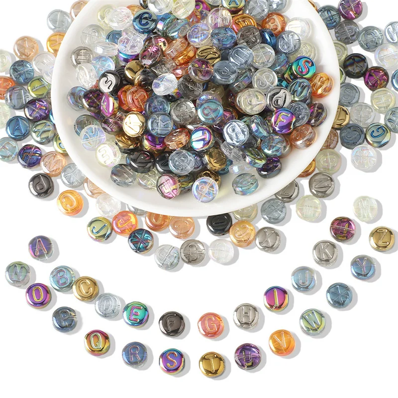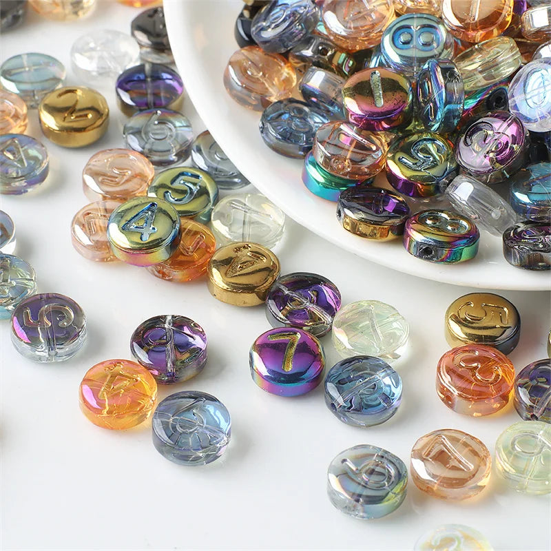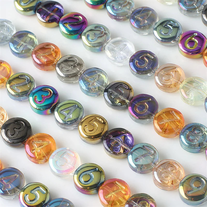 Digital letter beads medium hole glass beads 10MM flat round DIY mobile phone chain jewelry necklace accessories