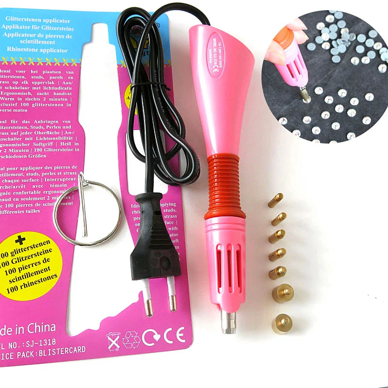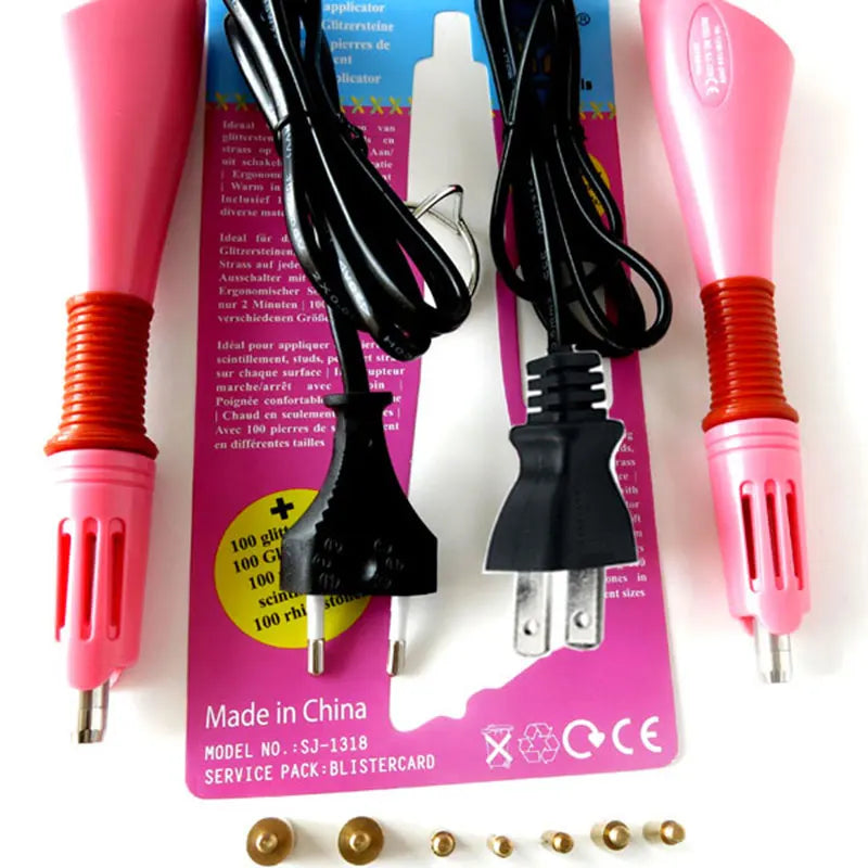 Fast Heated! Hot Fix Rhinestones Applicator Pink Hot Fix Applicator Iron-on Wand EU/US Plug Heat-fix Tool Wand Gun Garment B2852
