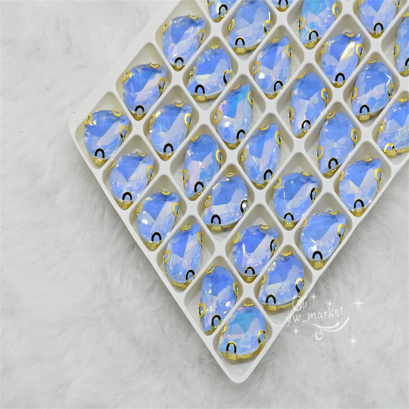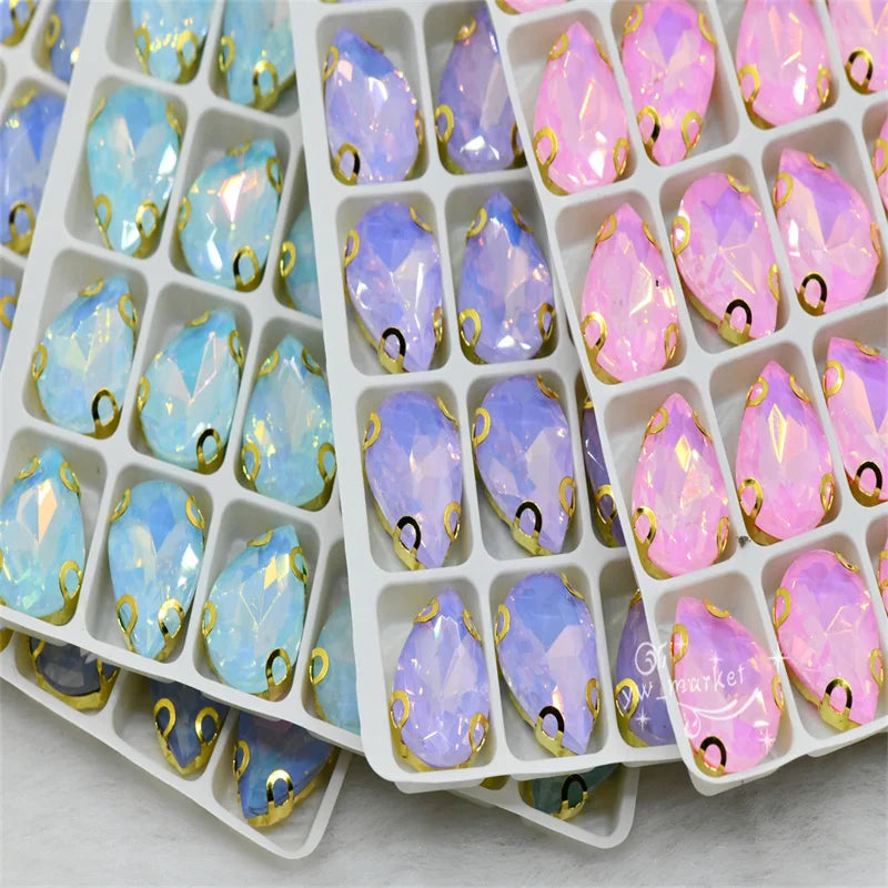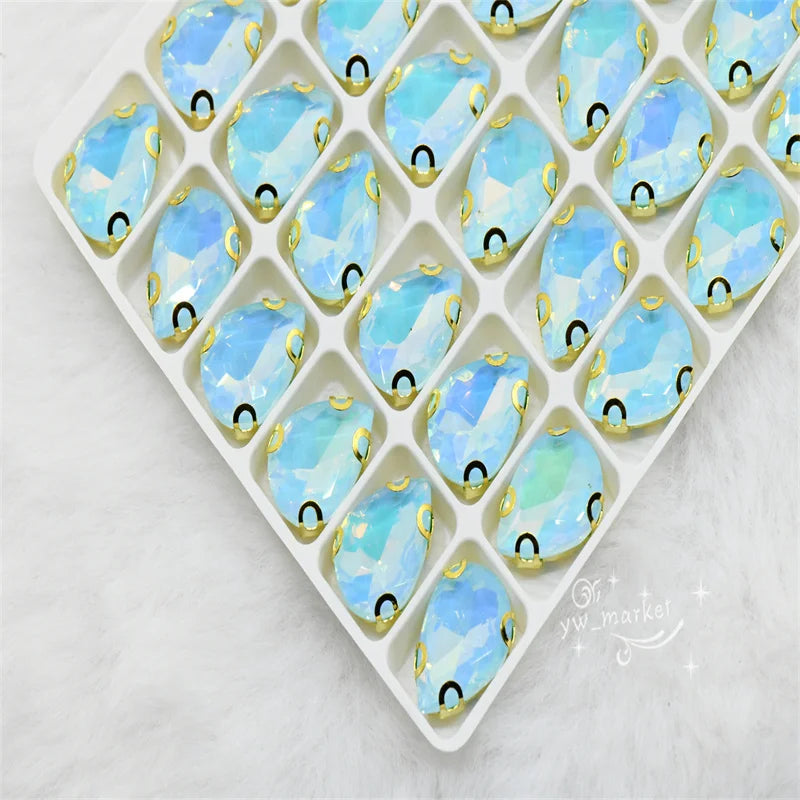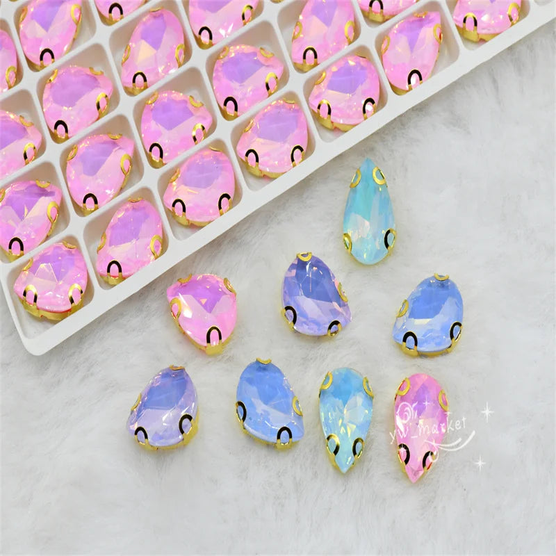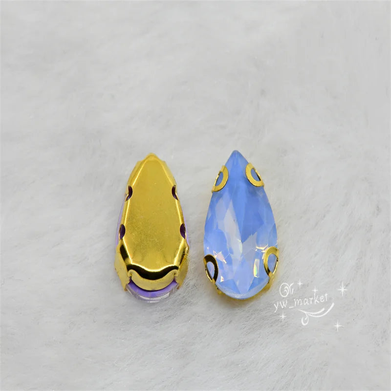 jelly ab rhinestones with gold claw teardrop crystal stones to make crafts sewing accessories beads appliques for dress 10x14mm