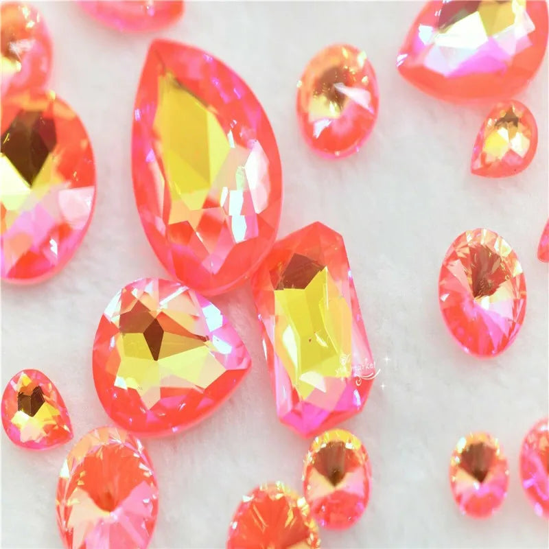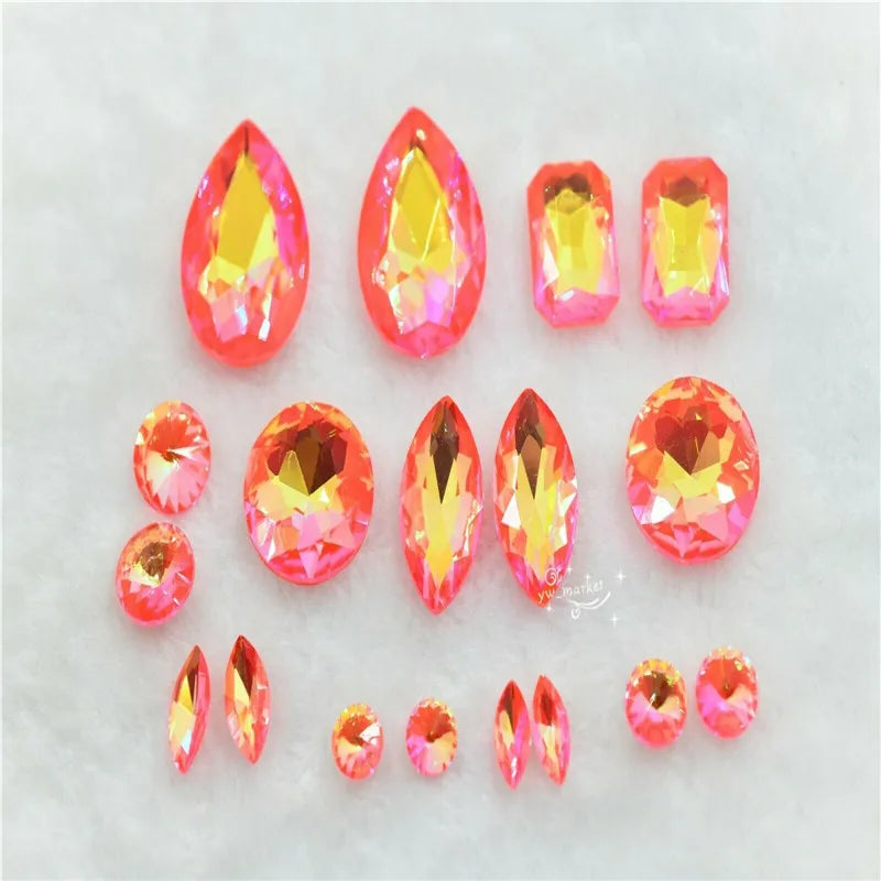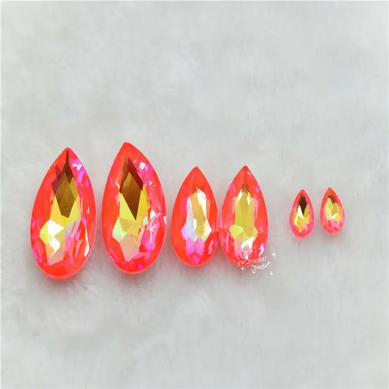 Jewelry Stones Orange Mocha Ab Decoration Rhinestones Crystal Glass Christmas Rivoli Navette Teardrop Glue on Clothes Crafts