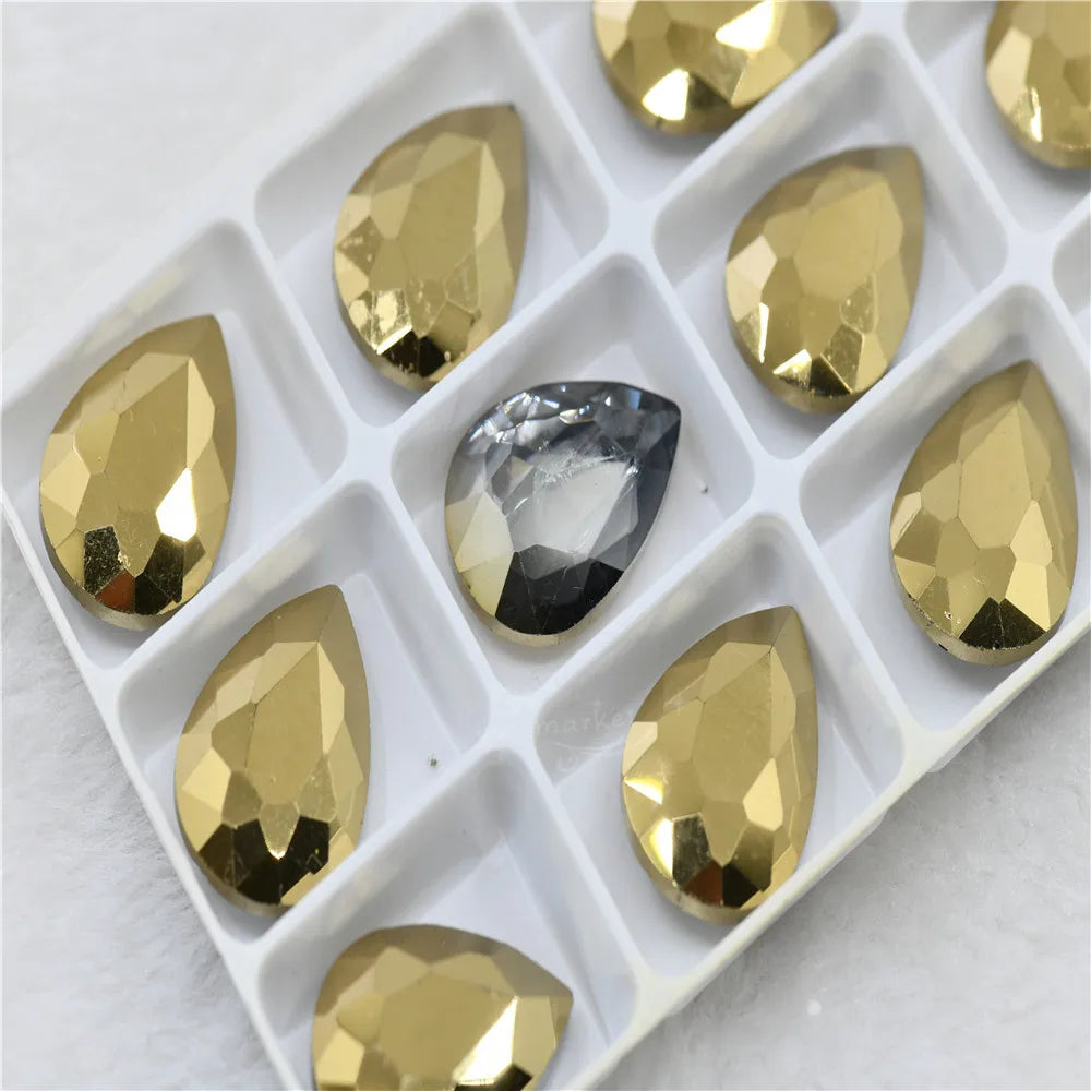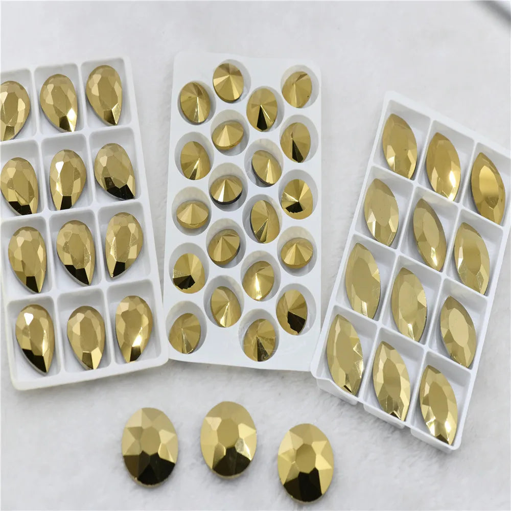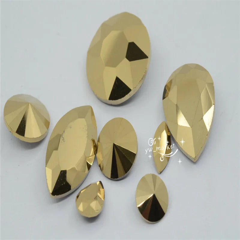 Metallic Gold Glue on Rhinestones Pointback glass crystal stones jewelry making Material: glass