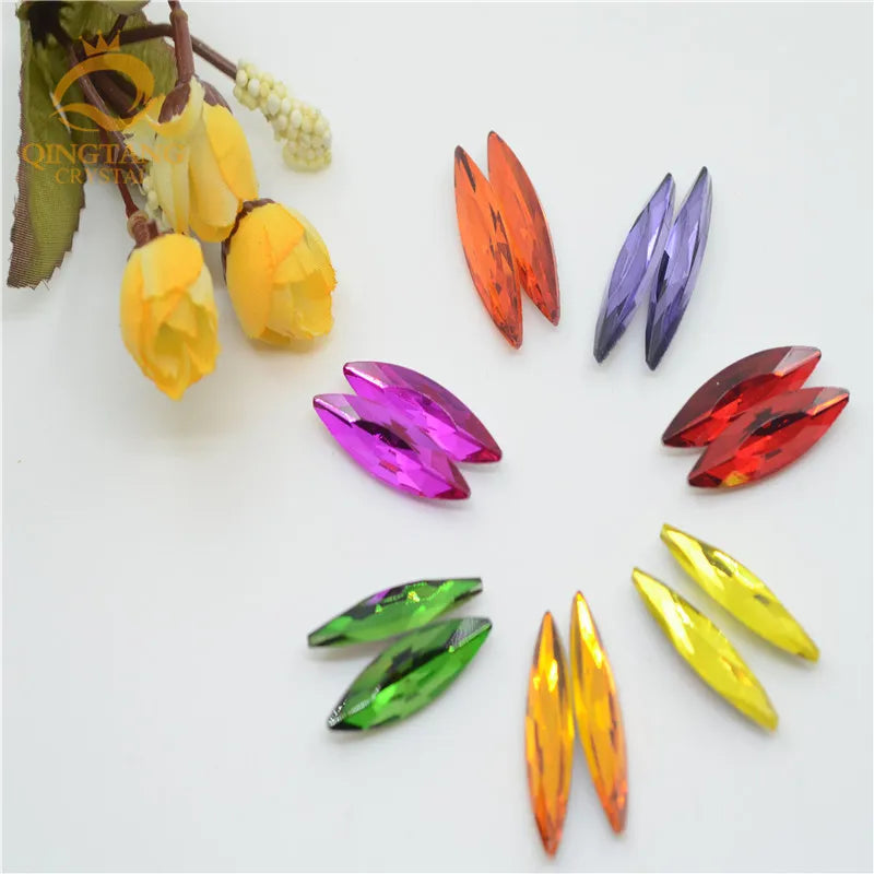 Navette Glass Crystal Pointback Color Rhinestone Strass Stones clothing crafts Jewelry Making 10mmX35mm 10mmx48mm 30pcs