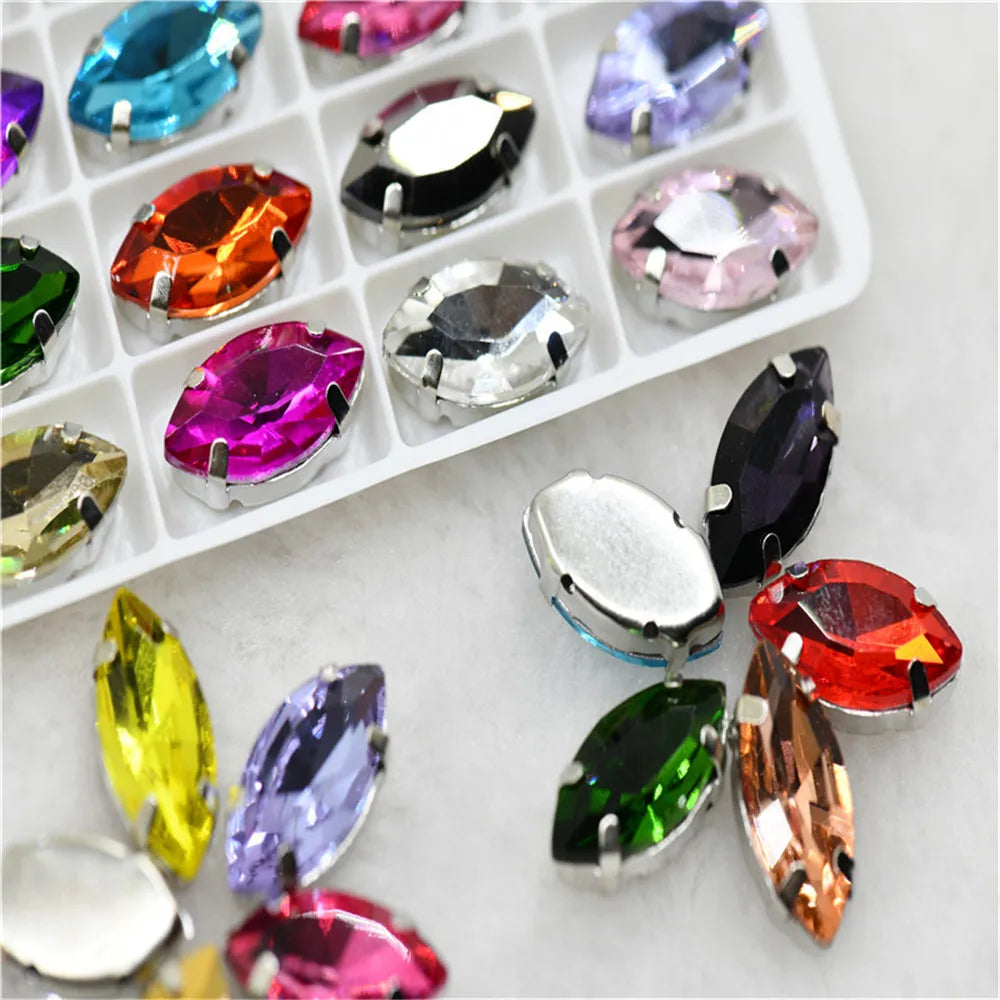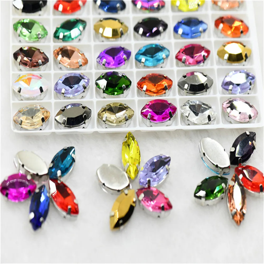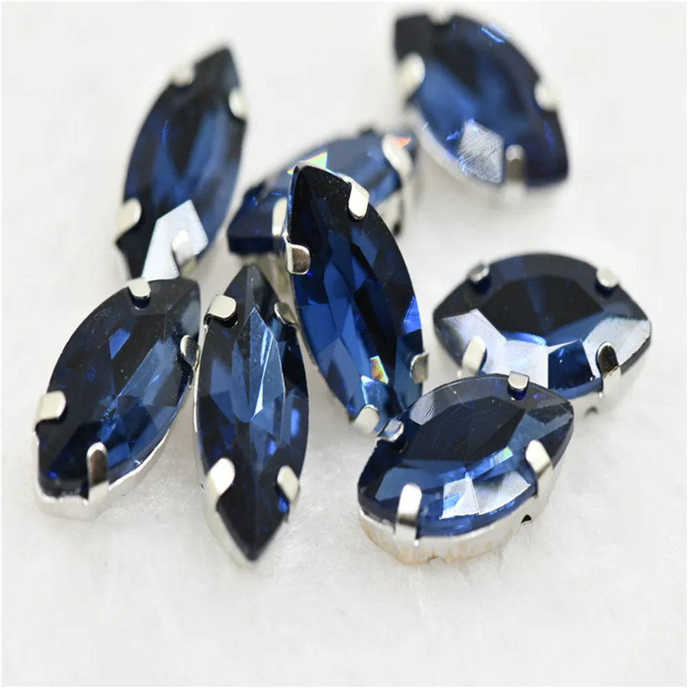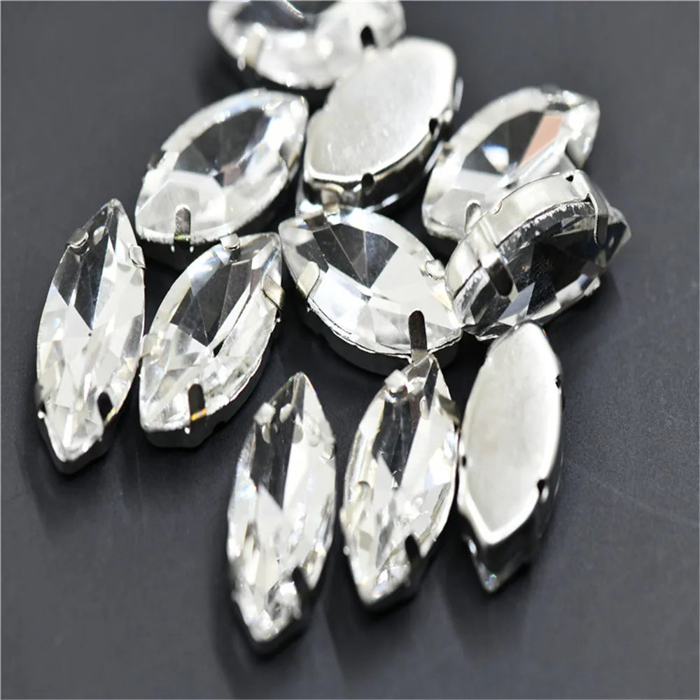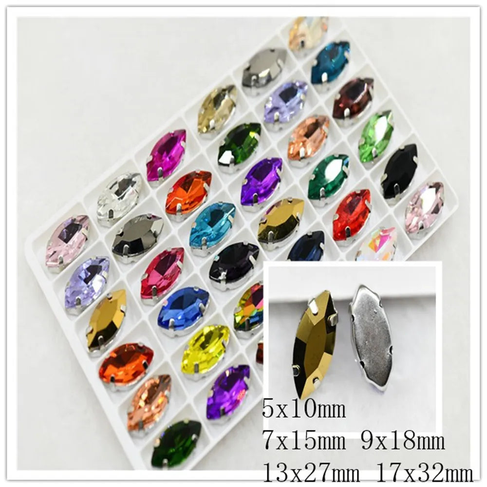 Navette rhinestones with claw silver golde base clothes sew on jewels soldering DIY jewelry Accessories