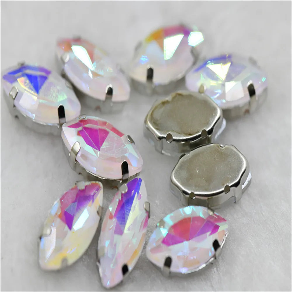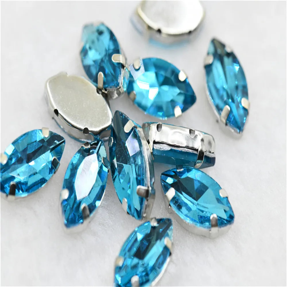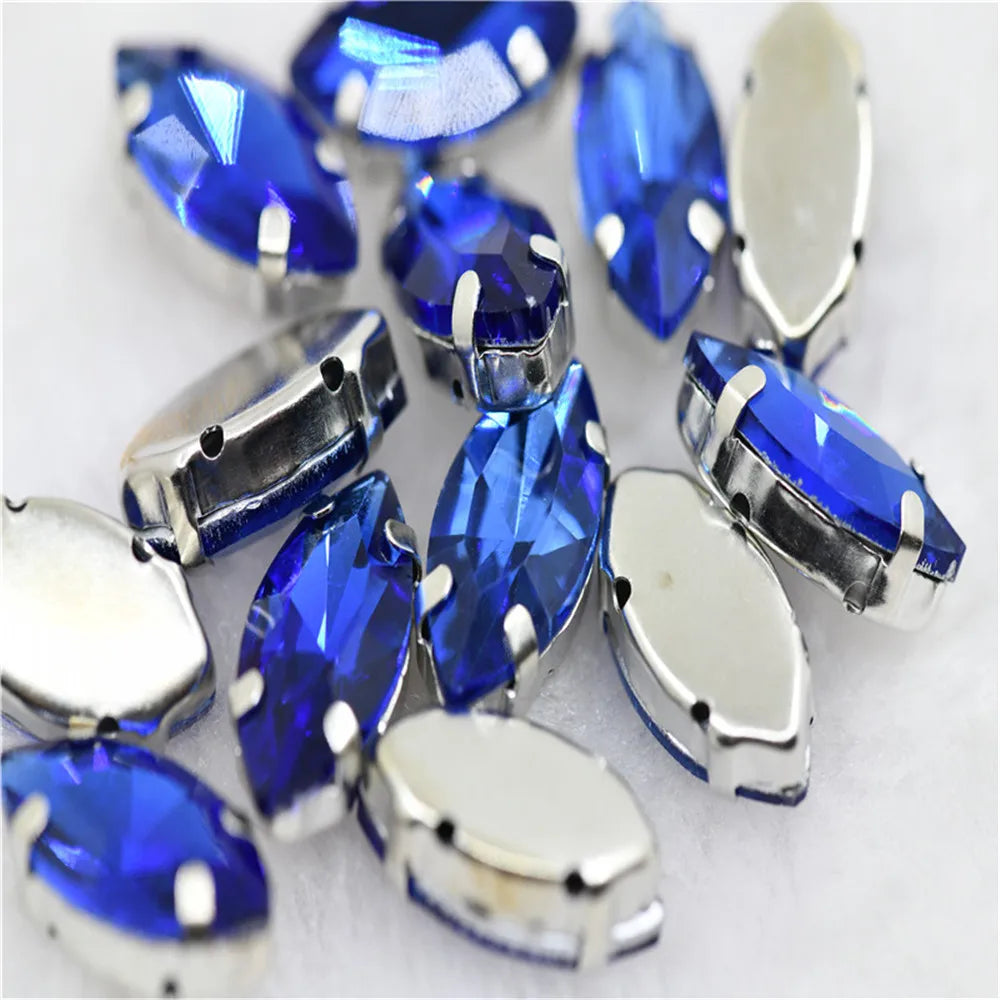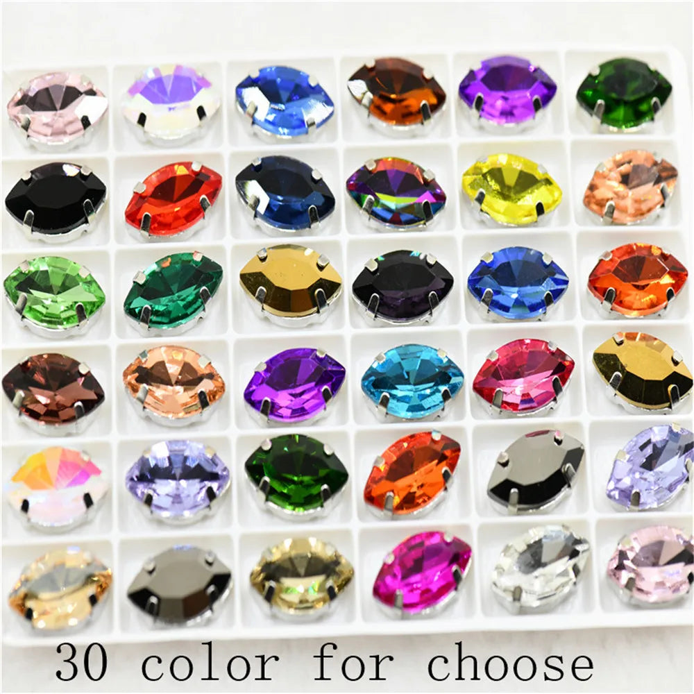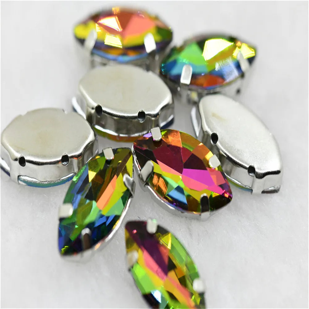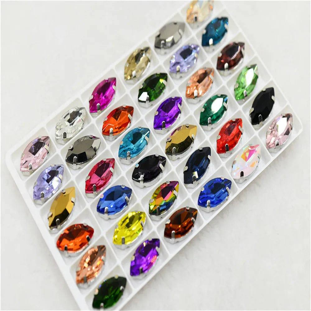 Navette rhinestones with claw silver golde base clothes sew on jewels soldering DIY jewelry Accessories