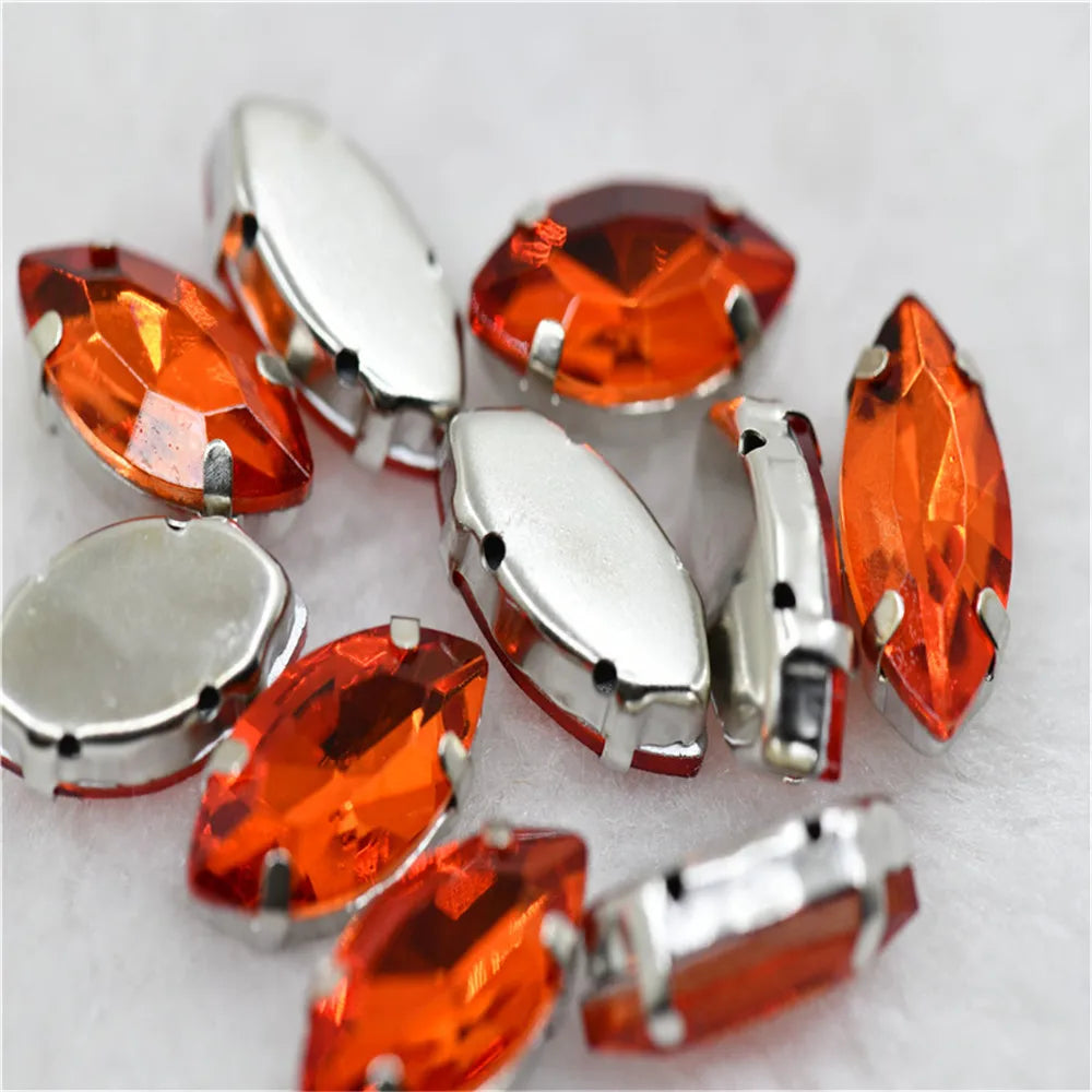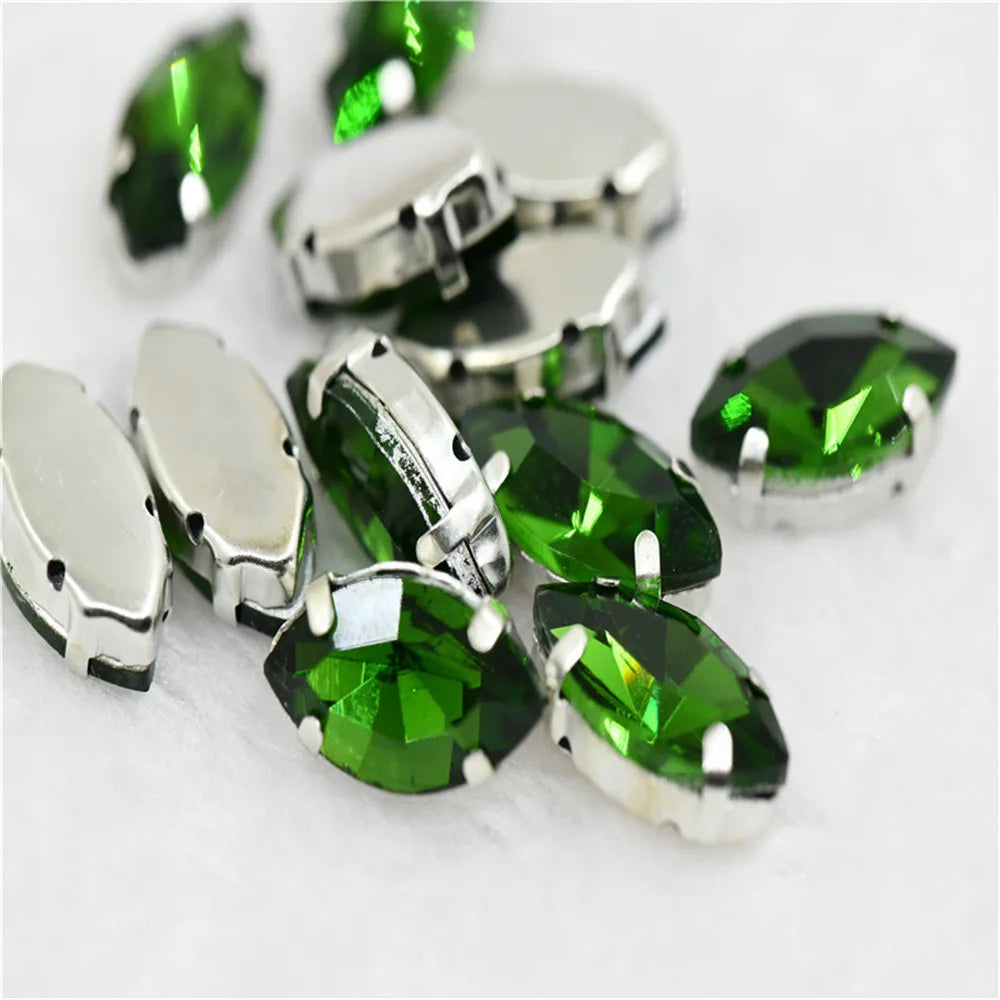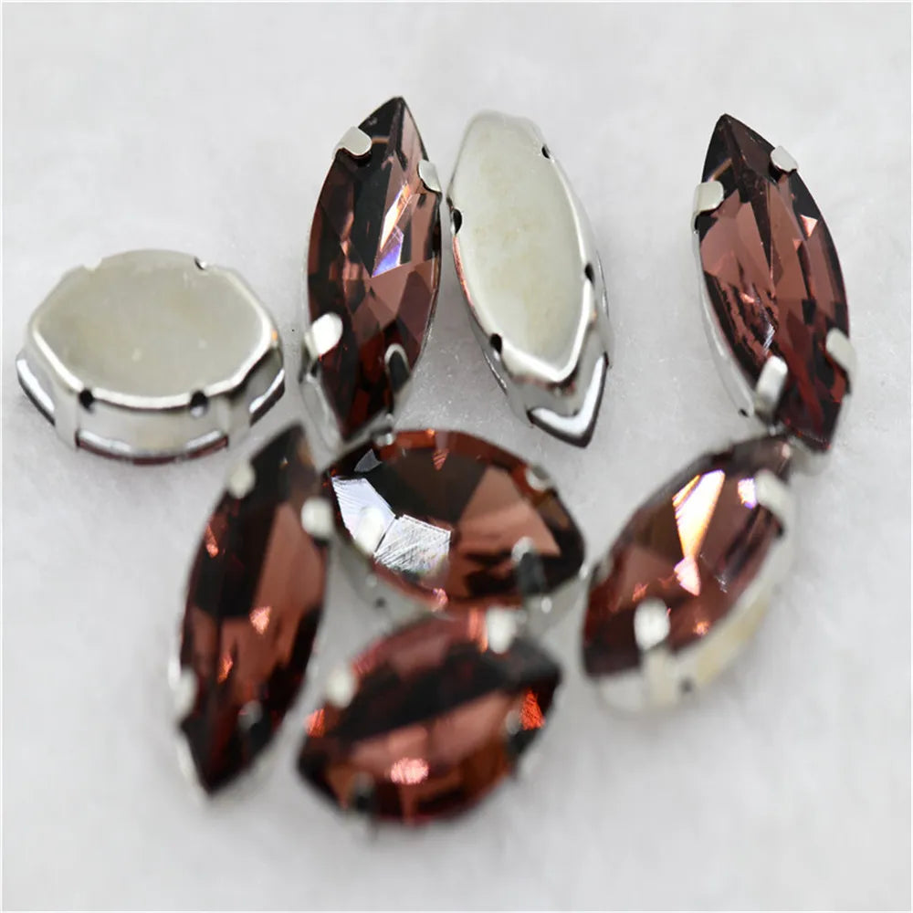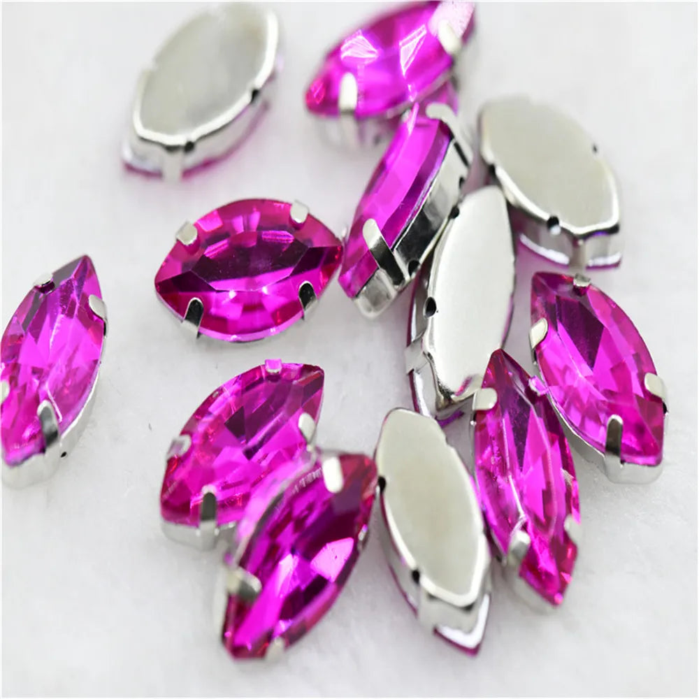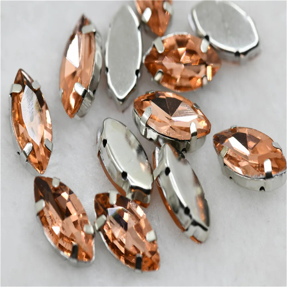 Navette rhinestones with claw silver golde base clothes sew on jewels soldering DIY jewelry Accessories