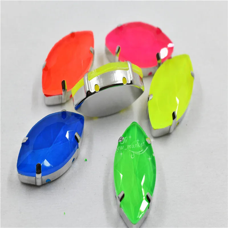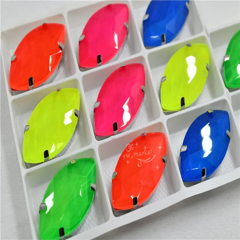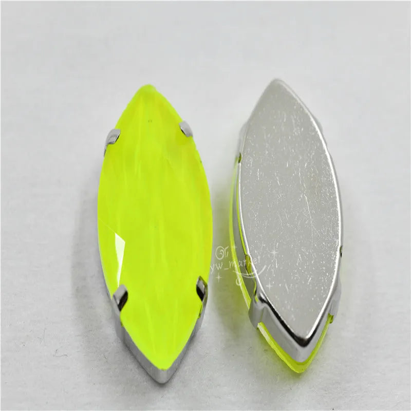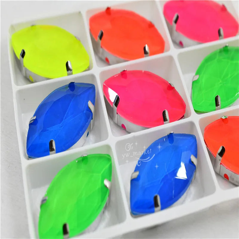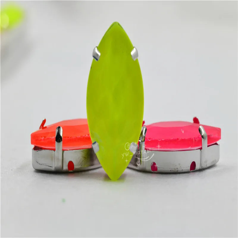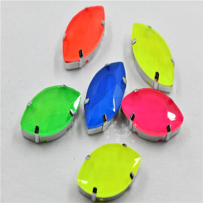 Neon Rhinestones Navette with strong Silver Setting dress Sew On Jewellery Soldering 9x18mm 17x32mm