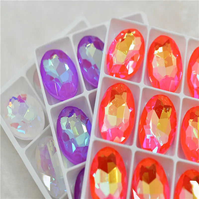 Oval stones mocha ab color Glitter Crystal Glass Rhinestone orange milky purple 20x30mm 13x18mm