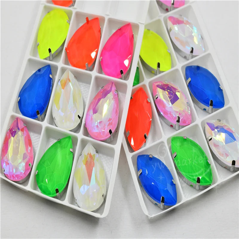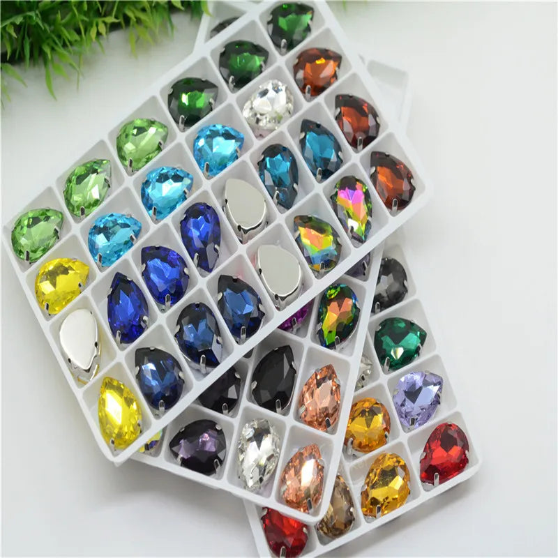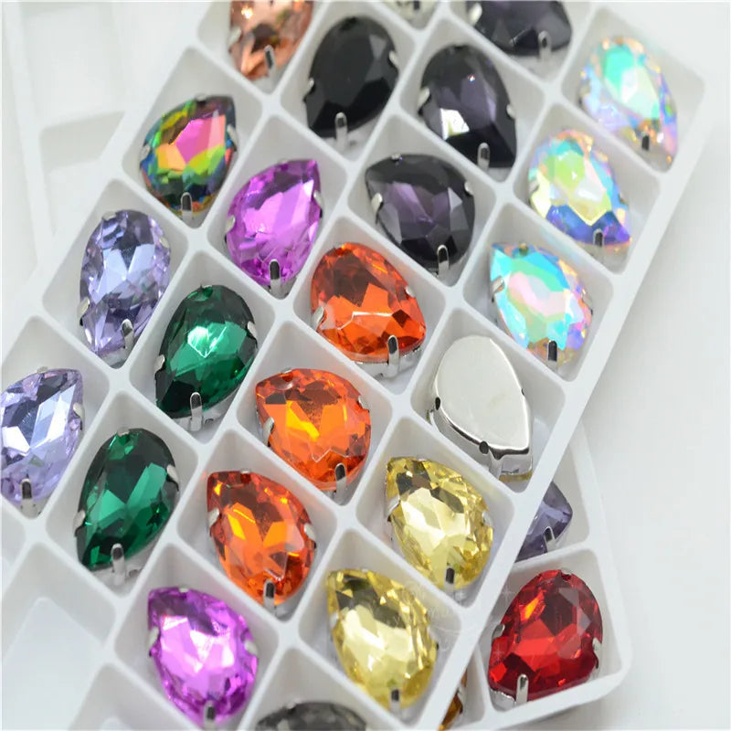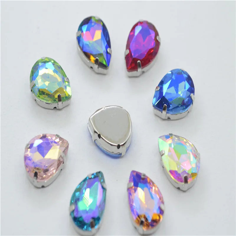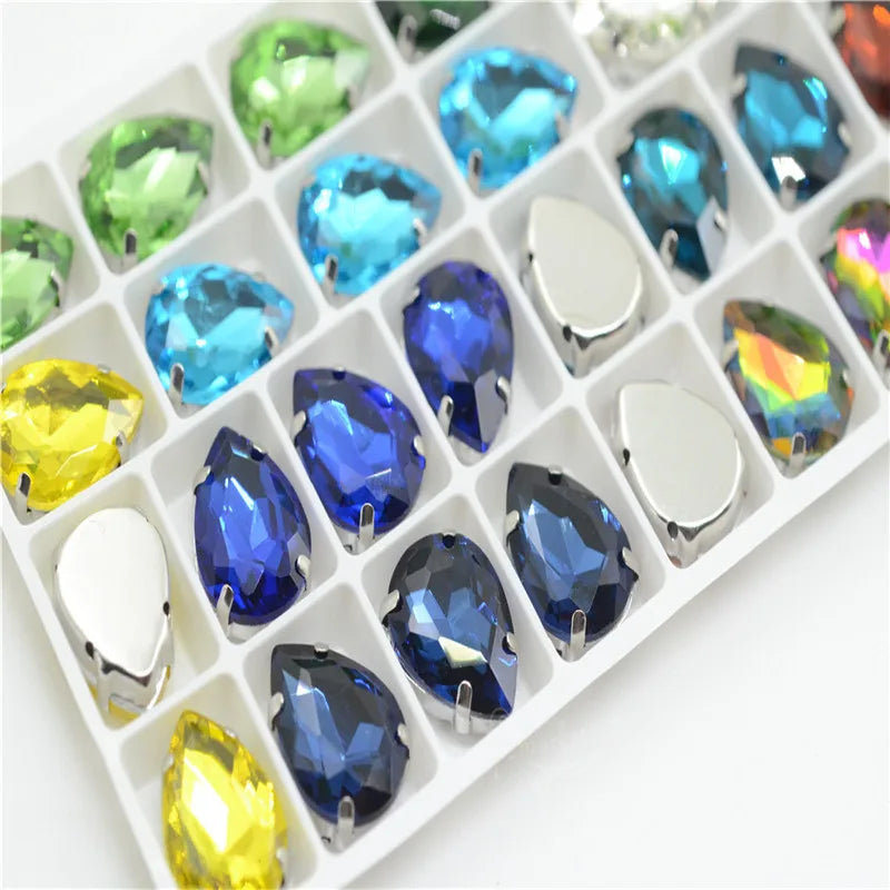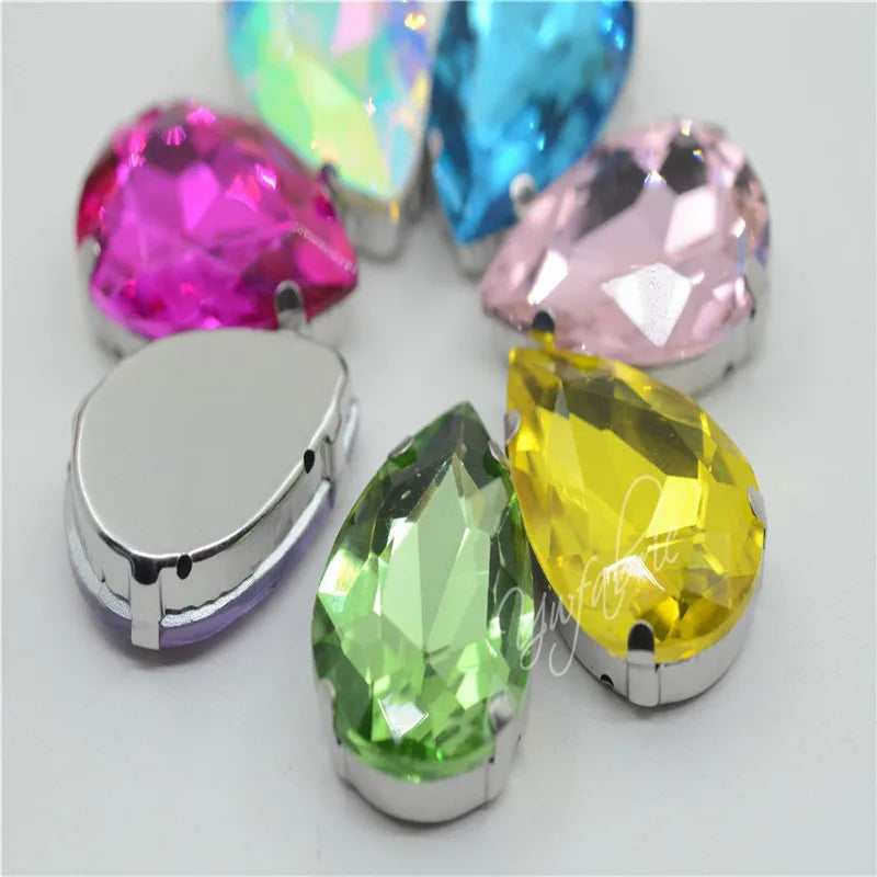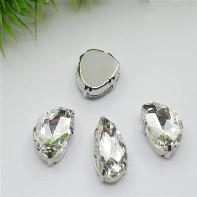 Rhinestones teardrop Stones silver claw setting for jewels soldering Sew on Glass Crystal Stones Diy Garment Clothes Shoes