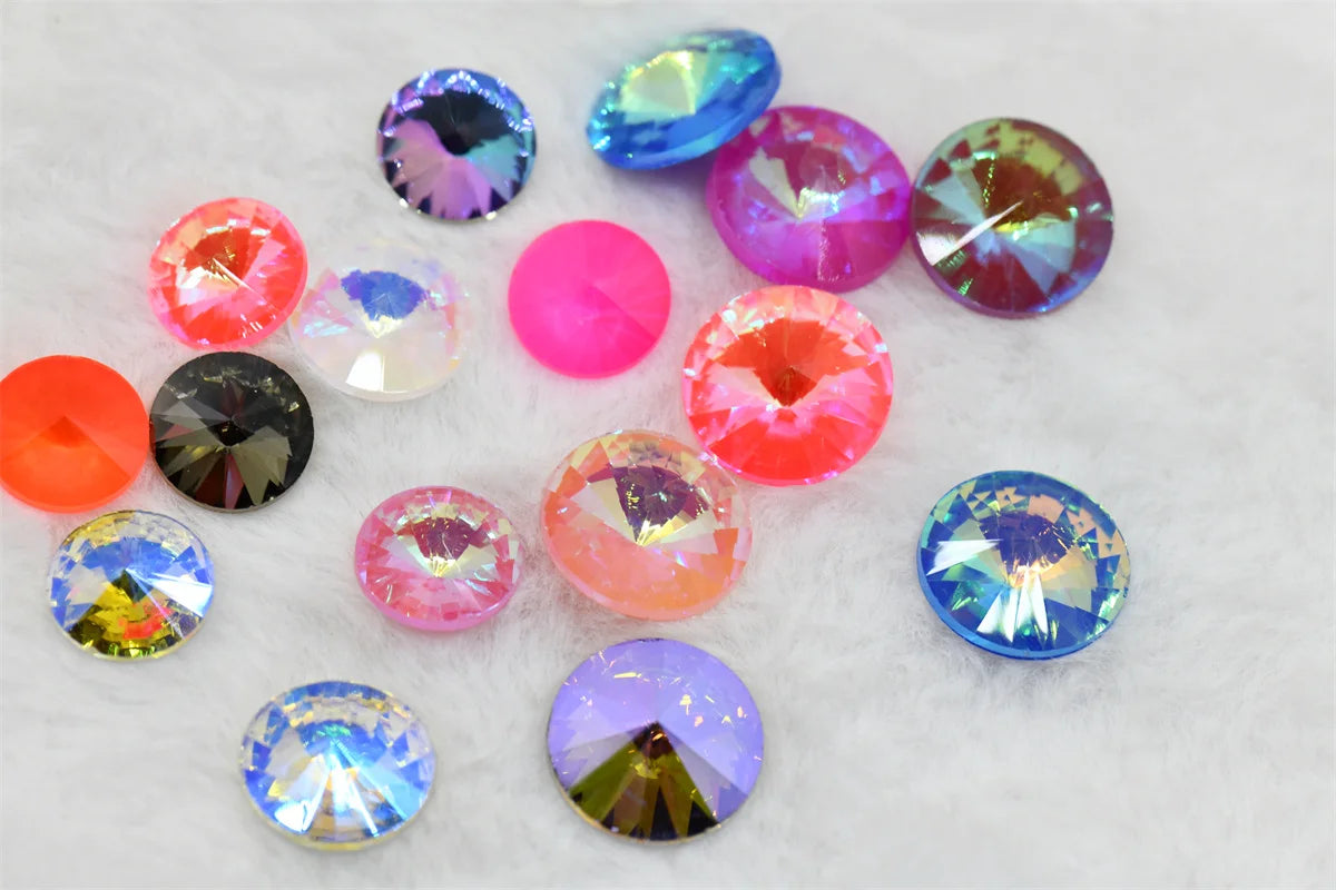 Rivoli Ab Glass Crystal Rhinestones For Needlework Pointback Stones Dress Decoration Jewelry Making 8mm 10mm 12mm 14mm 18mm