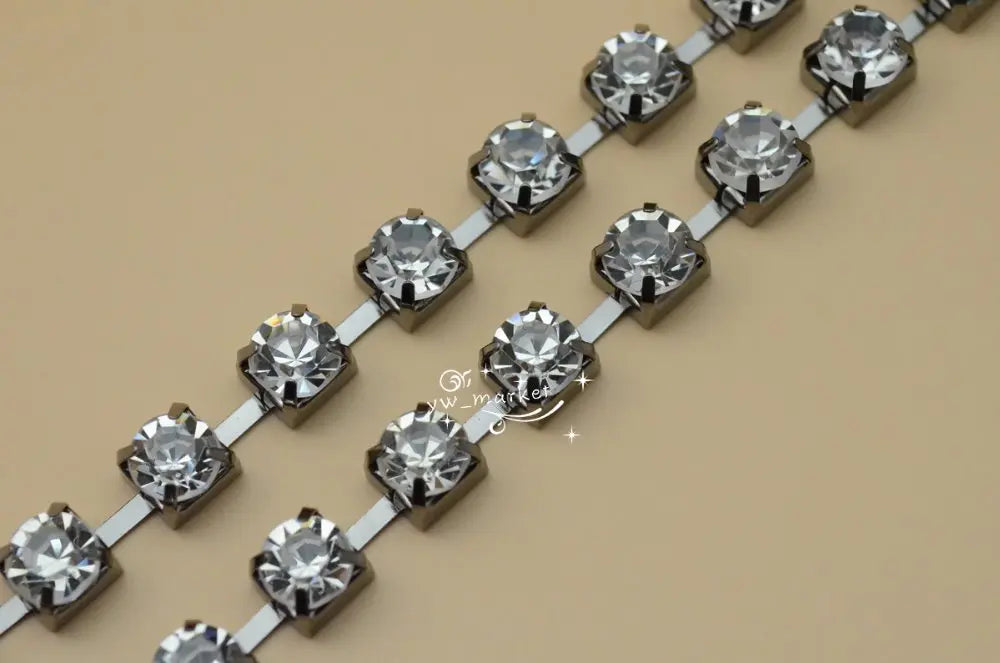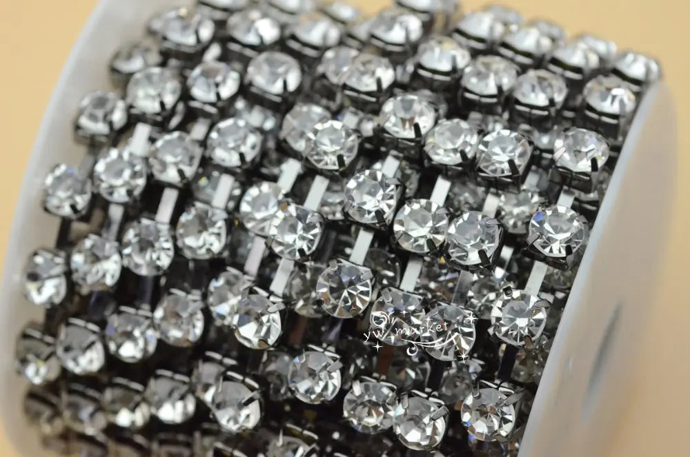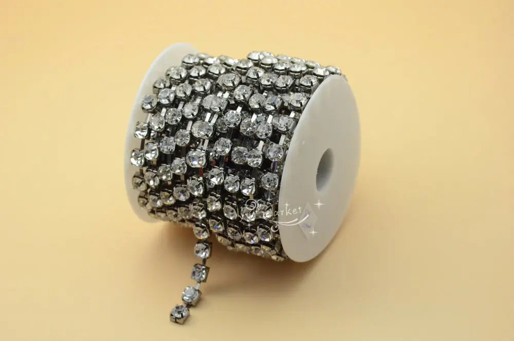 SS38 8mm 888 Clear Crystal Rhinestone Chain Gun Black bridal appliques trims 10 yard
