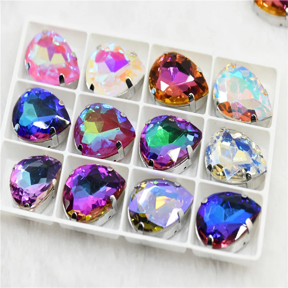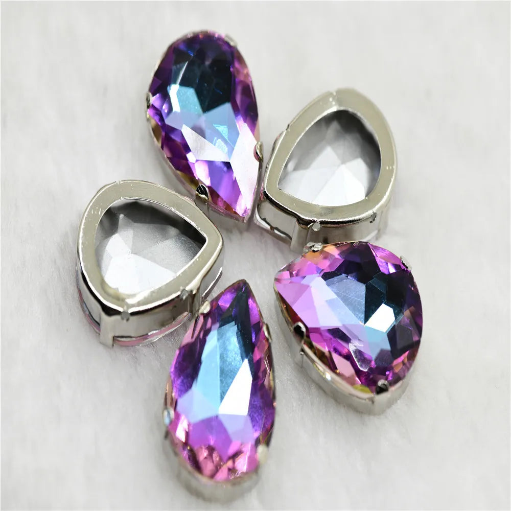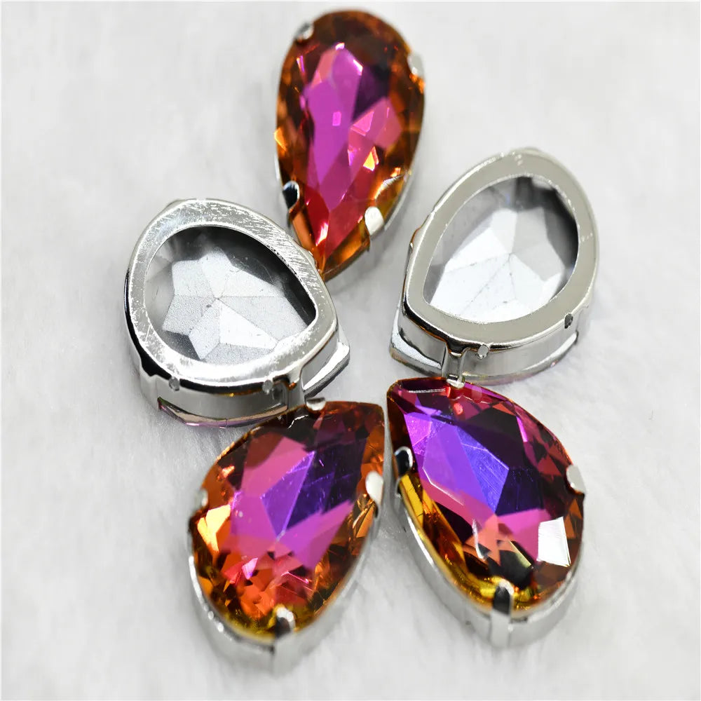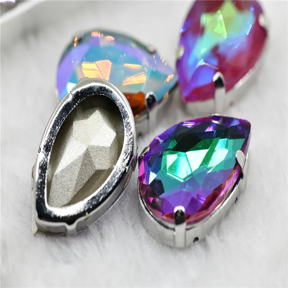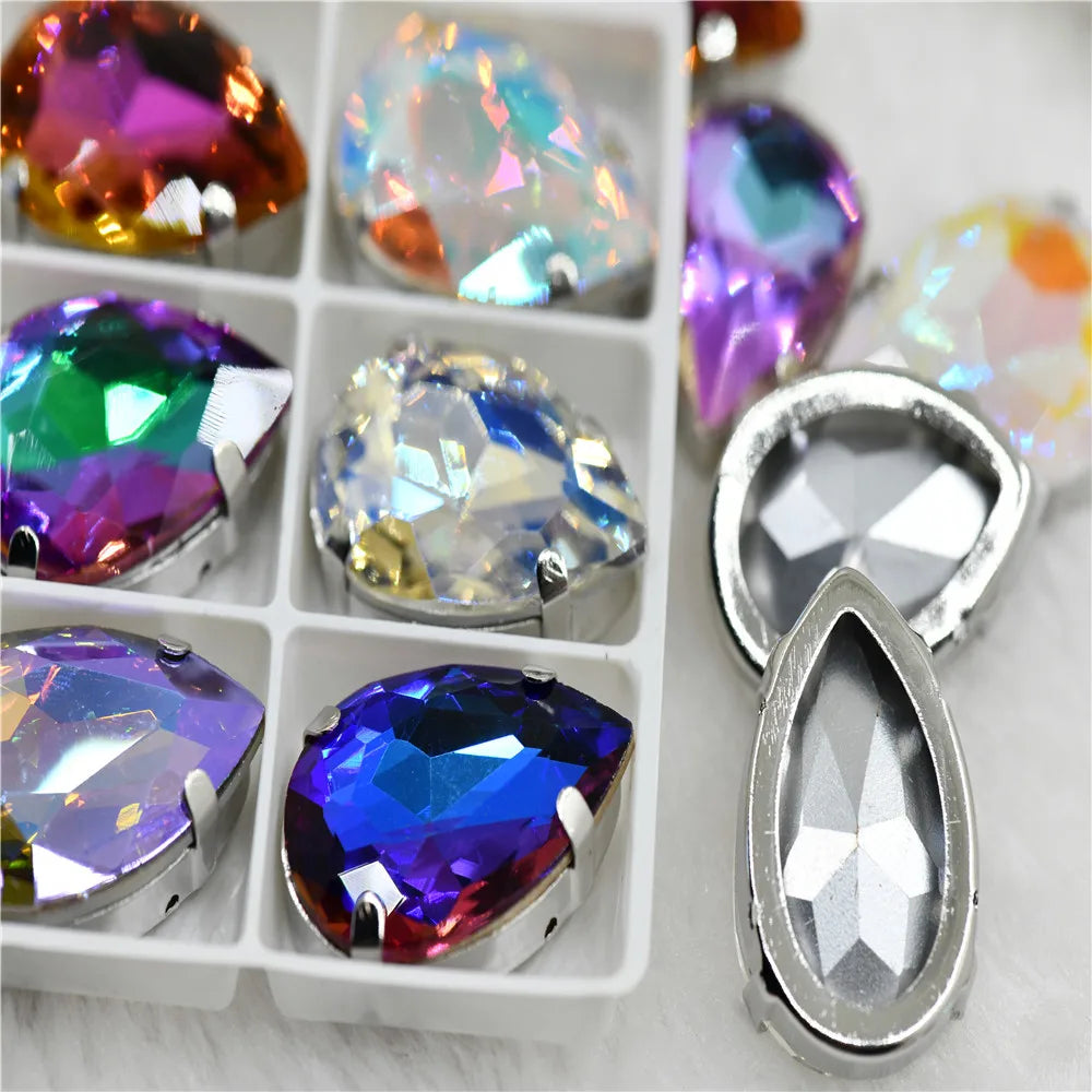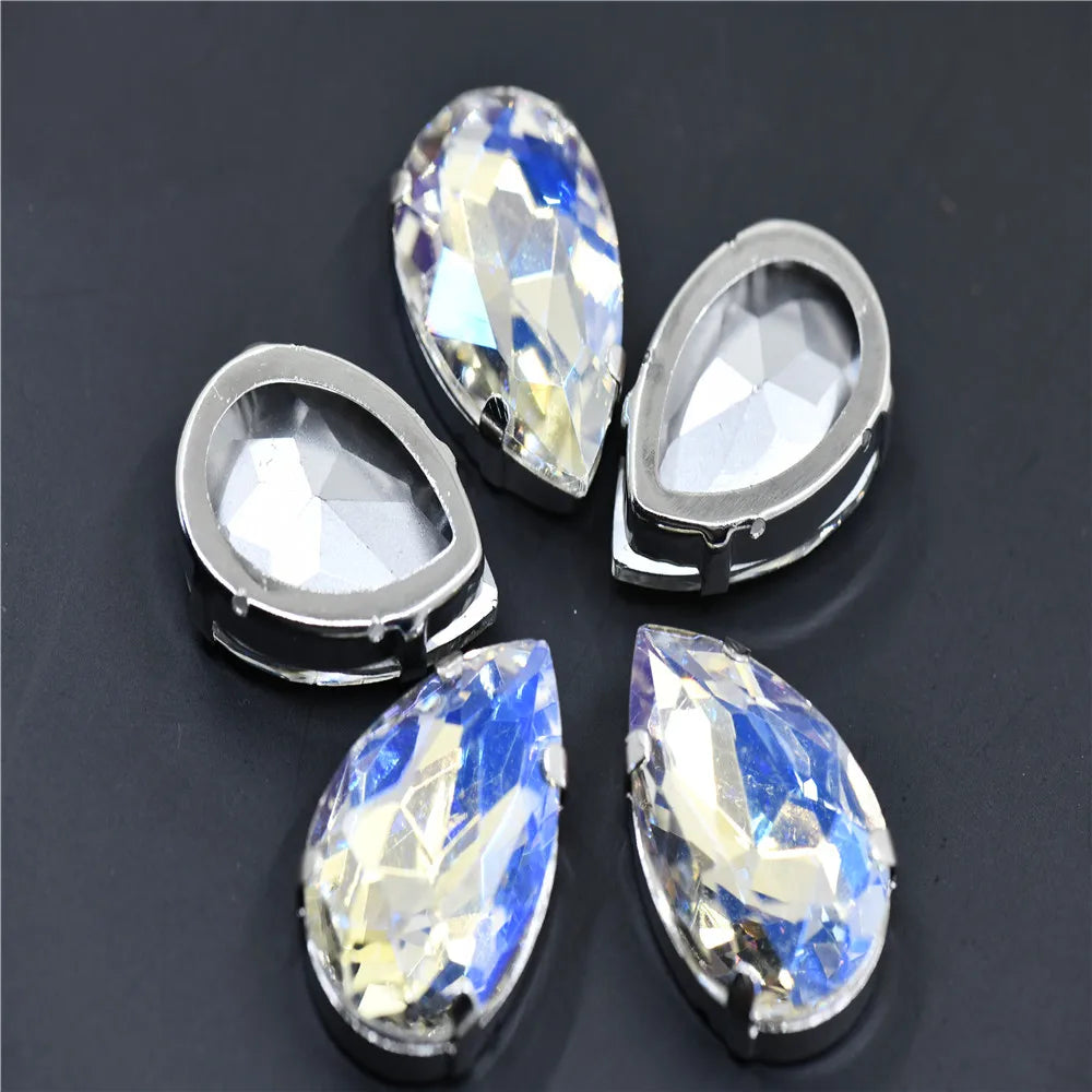 Teardrop glass rhinestones beads with claw setting sew on стразы Diamond DIY Clothing Accessories Jewelry Making silver base