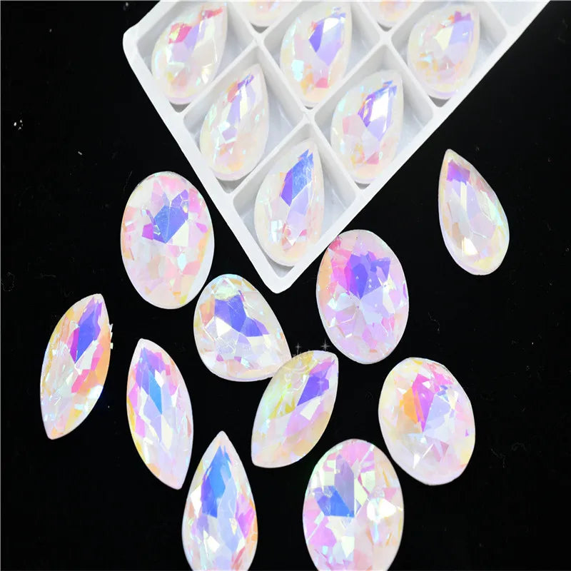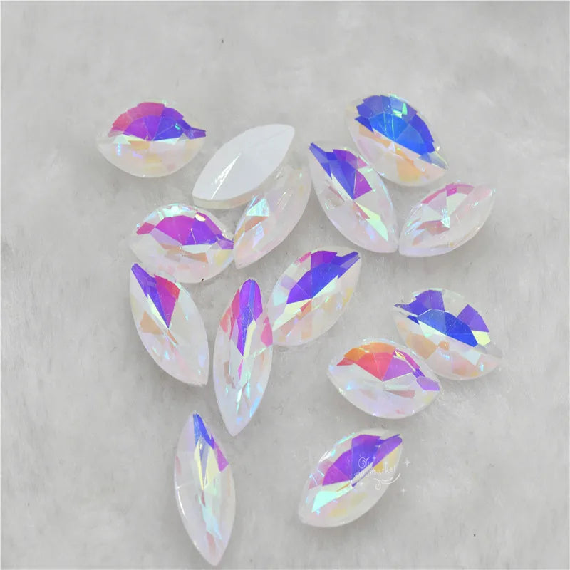 White Milk ab Rhinestones Navette ROUND TEARDROP Pointback Glass Crystal Stones Jewelry Making