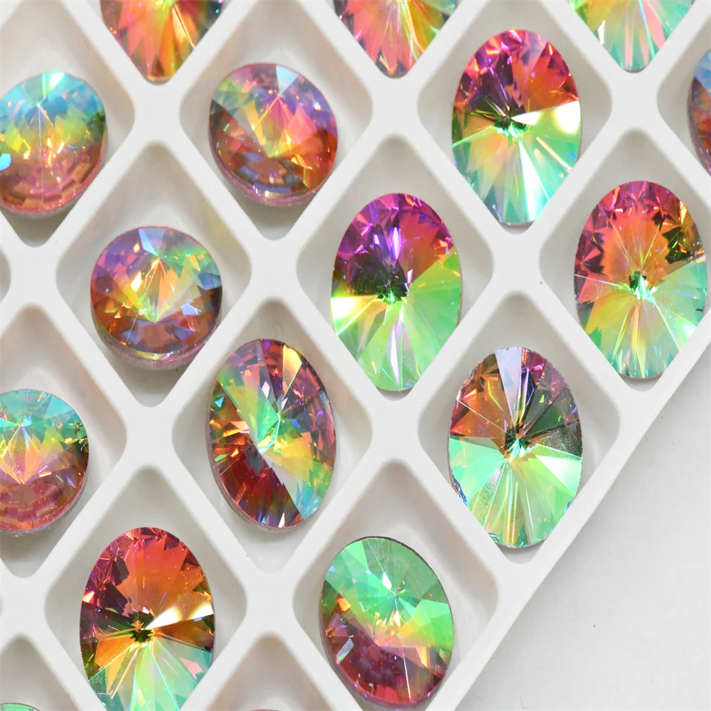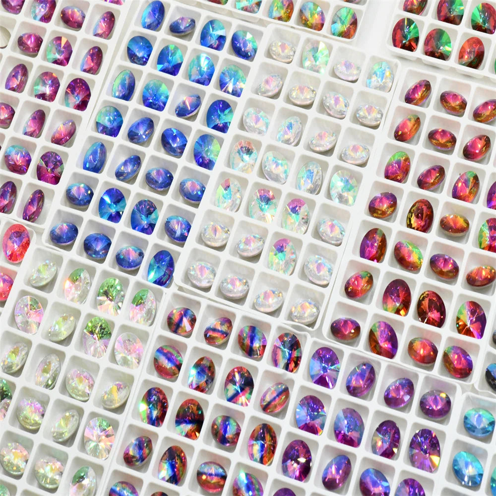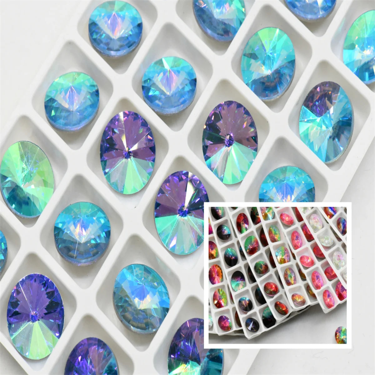 K9 12 mm 14mm Rivoli Glitter Crystal Rhinestones For Crafts Glass Pointback Rhineston for Jewelry Making