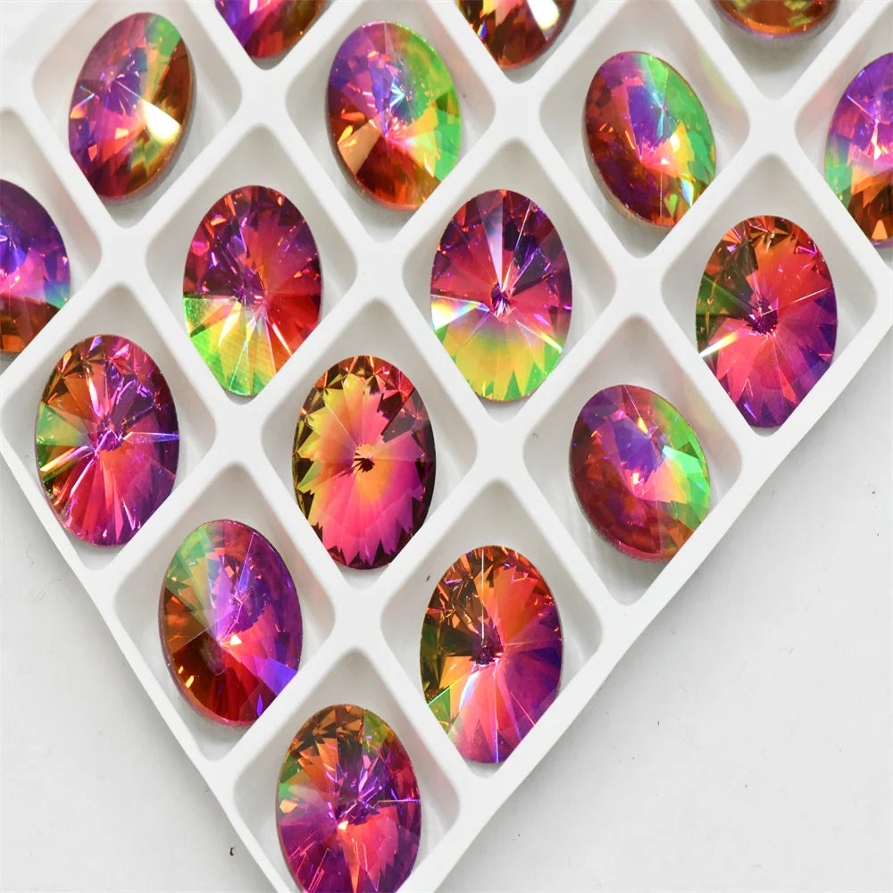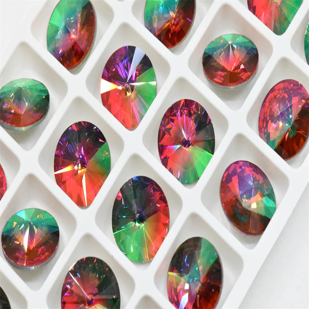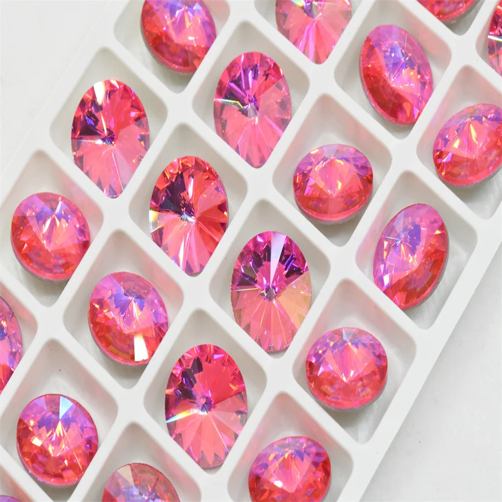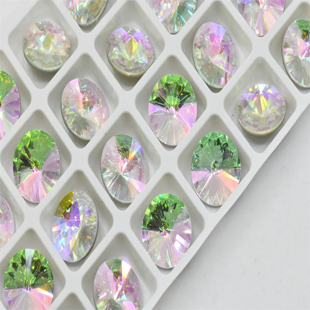 K9 12 mm 14mm Rivoli Glitter Crystal Rhinestones For Crafts Glass Pointback Rhineston for Jewelry Making