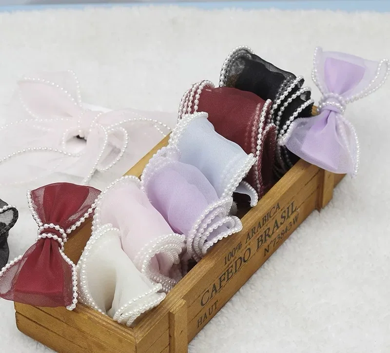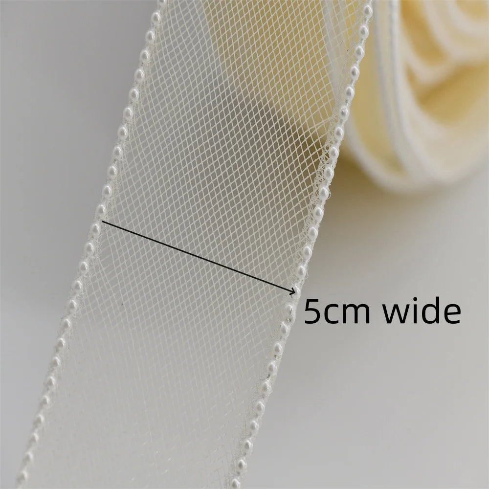 10yards 5cm Crinoline Pearl Edge Silk Lace Ribbon Children's Hair Accessories Lolita Handmade Decorative Gift Box for Wedding