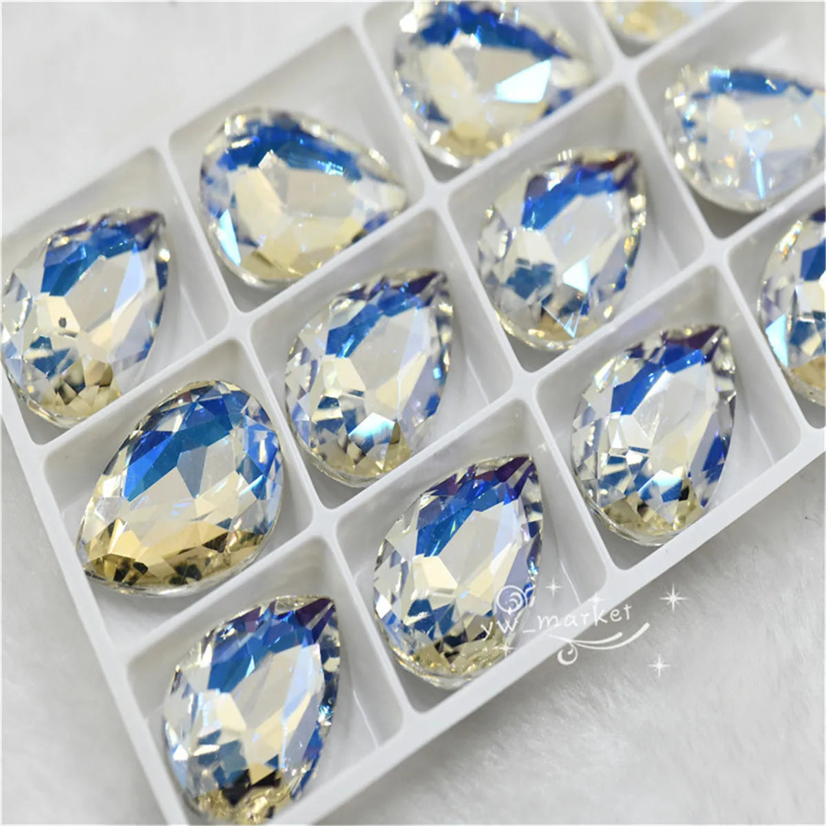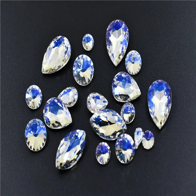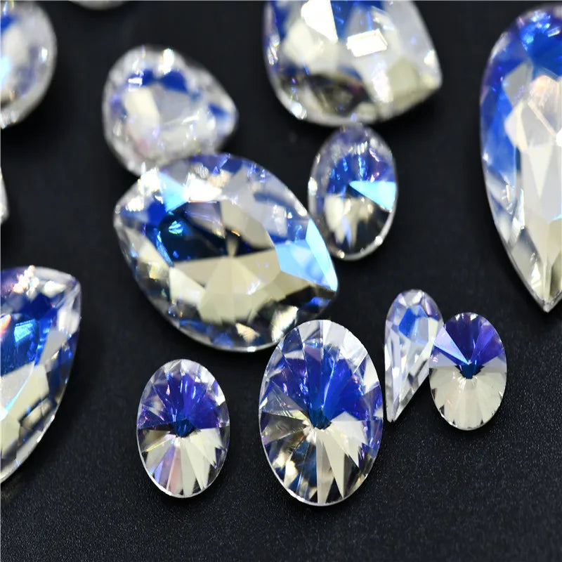 Moonlight color Droplet Home Decoration Rhinestones Glass Rivoli Navette Glue on jewels Crafts 20x30mm 17x32mm