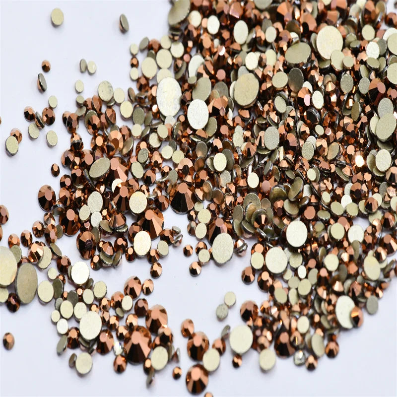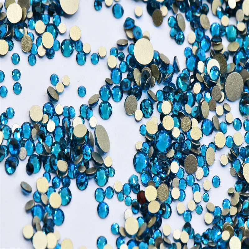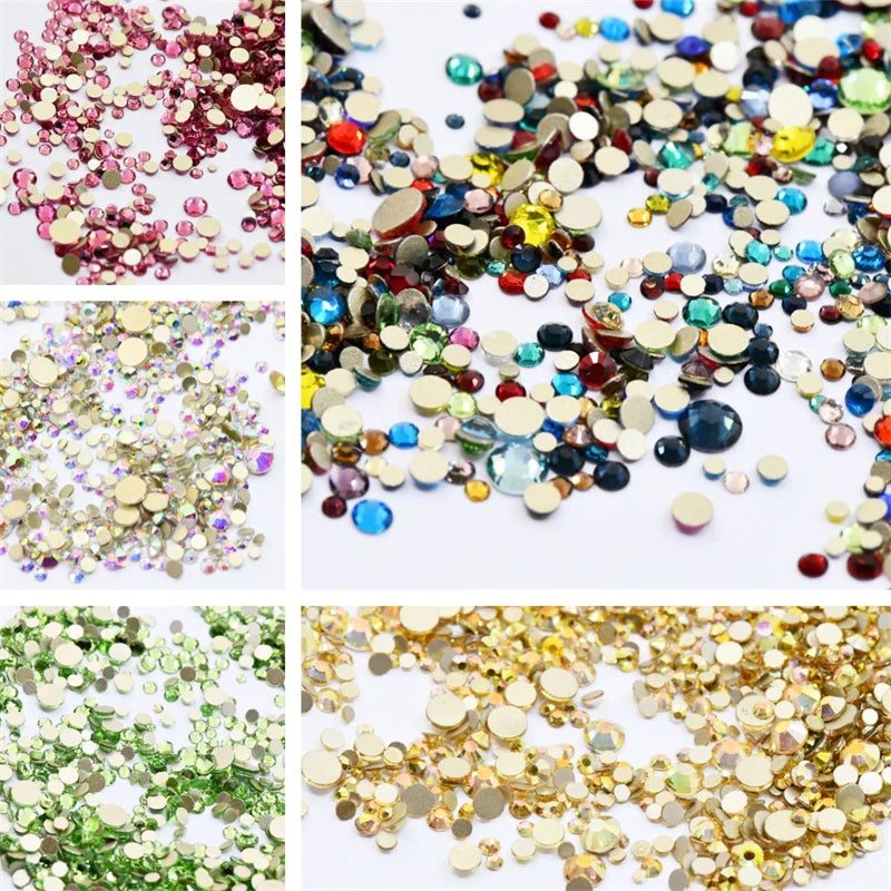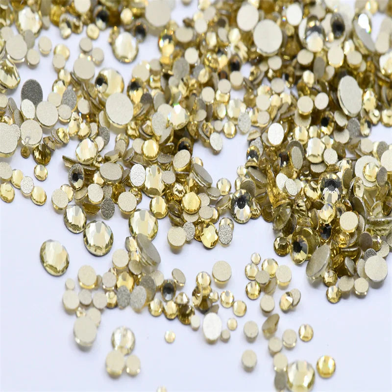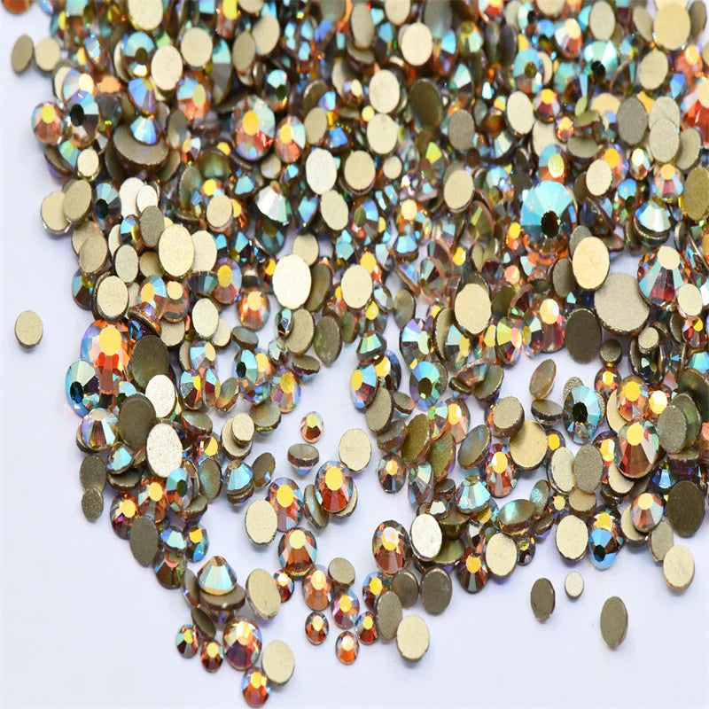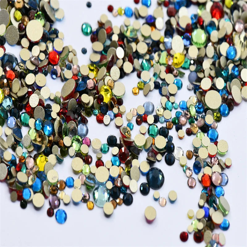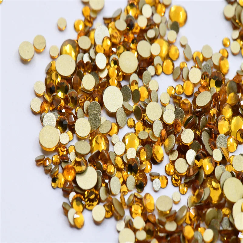Non Hotfix ss4-ss20 gold FlatBack Rhinestones Nail Art Decorations Glitter Gems Multicolored glue on