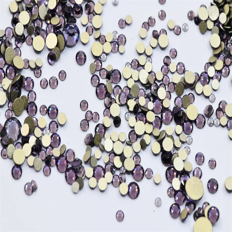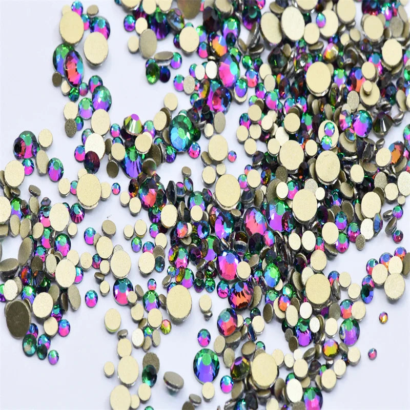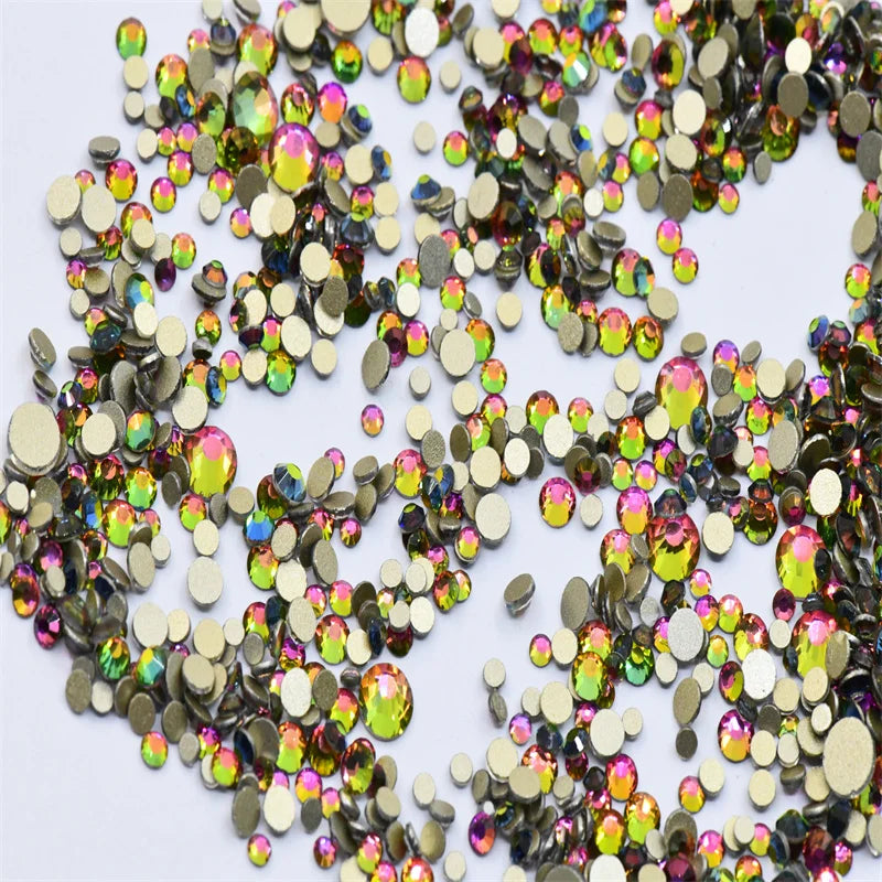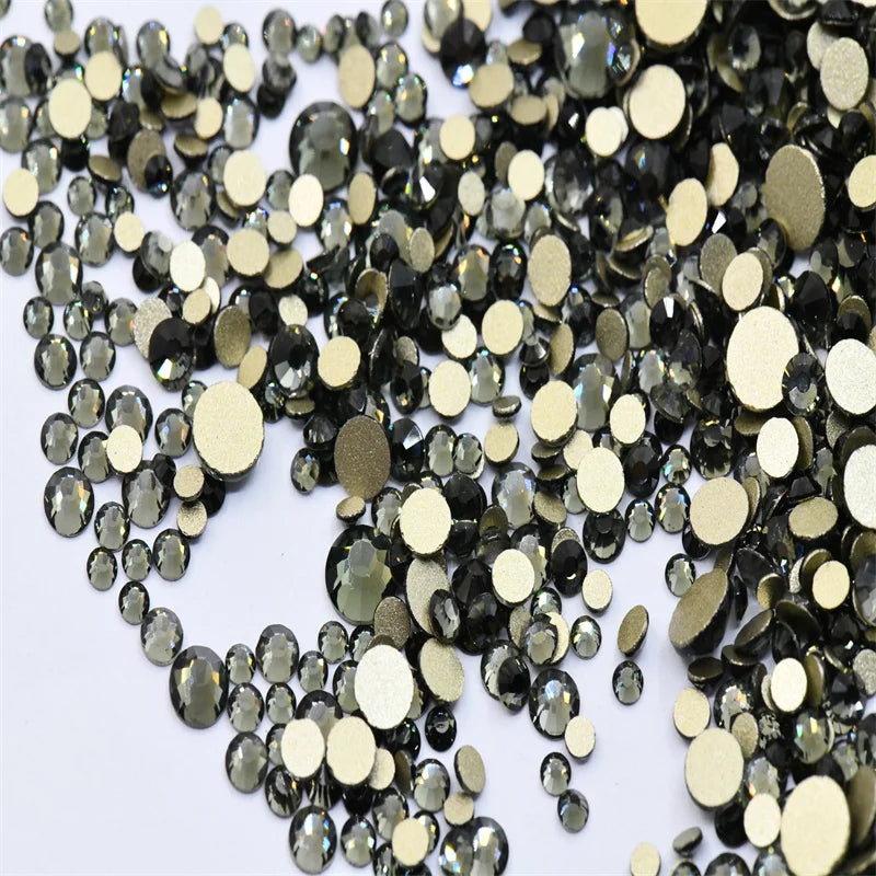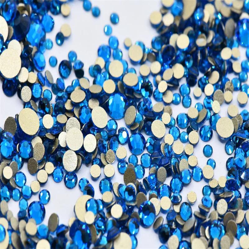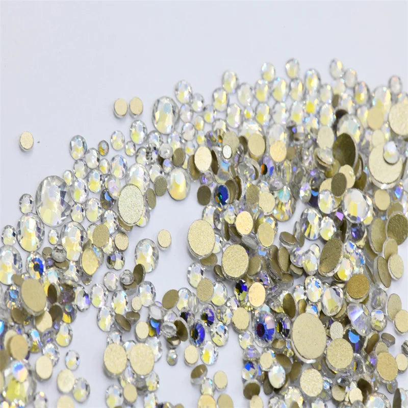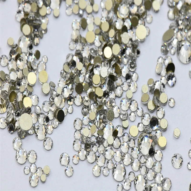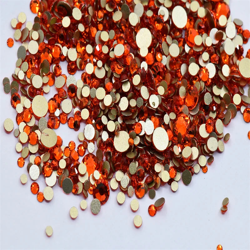 Non Hotfix ss4-ss20 gold FlatBack Rhinestones Nail Art Decorations Glitter Gems Multicolored glue on