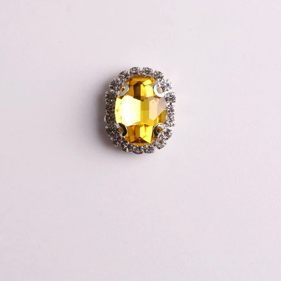 Glass crystal with rhinestone chain in Silver metal claw settings Oval shape