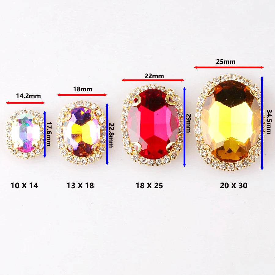 Oval shape Glass crystal with rhinestone chain in Silver metal claw settings Sew on beads clothes shoes diy trim