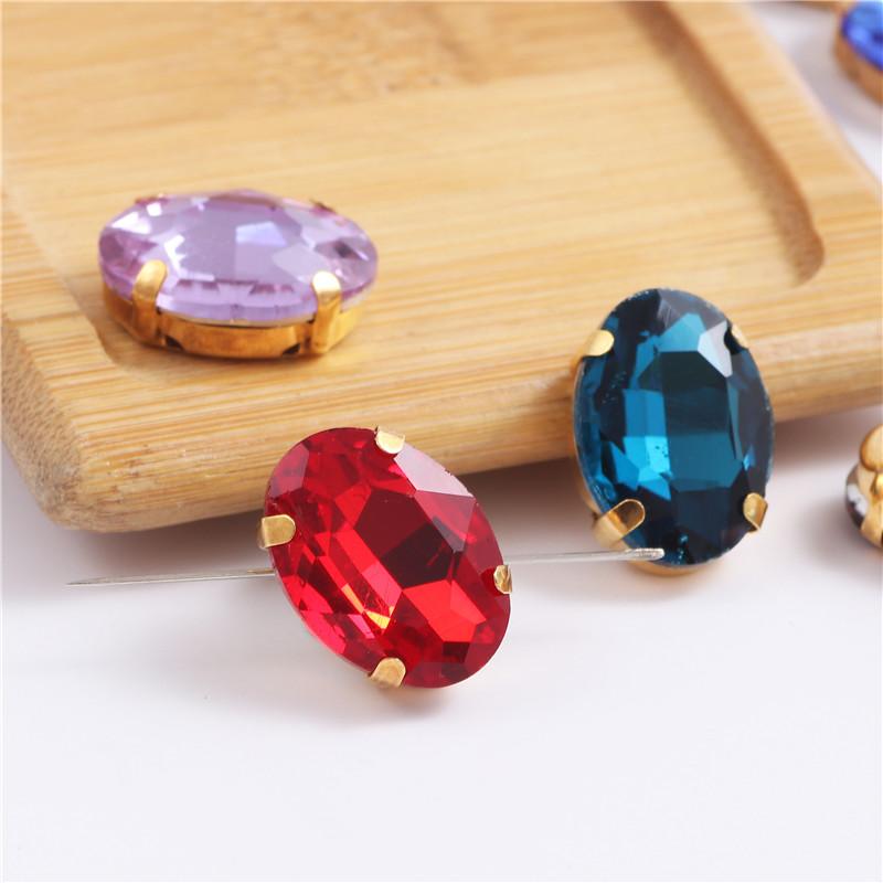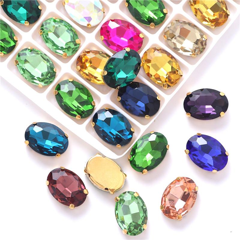 Oval shape Glass Sew on Rhinestones with Gold Claw Handcrafts strass sew on stone clothing accessories shoes bag diy