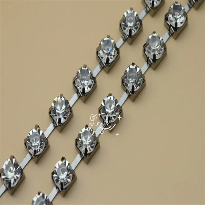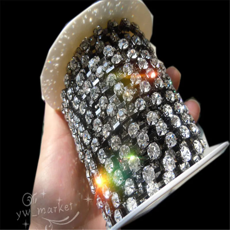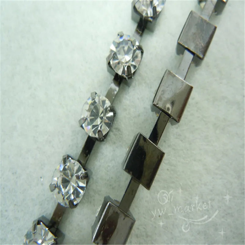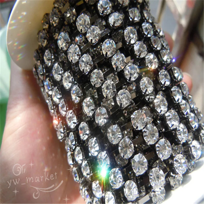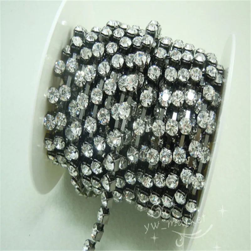 SS28 6mm Crystal Clear Rhinestone Chain Trim Black sew on 10 yard
