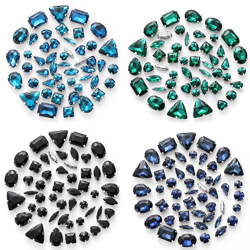 white k claw 50pcs Color Mixed Shape Sew on Glass Rhinestone Crystal Buckle Diy Wedding Decoration Clothes Shoe Dress