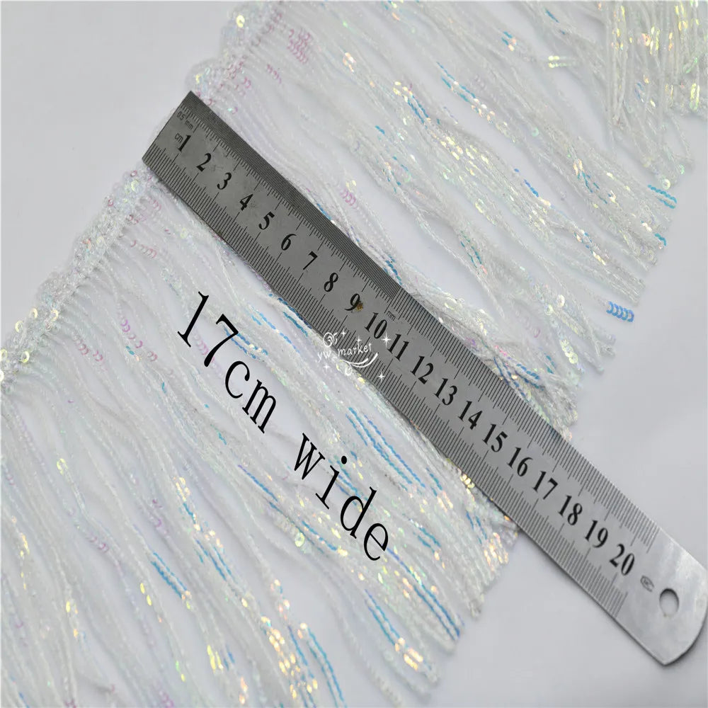 17cm Laser Tassel Fringe trim lace fabrics for show clothes crafts making dress skirt decoration