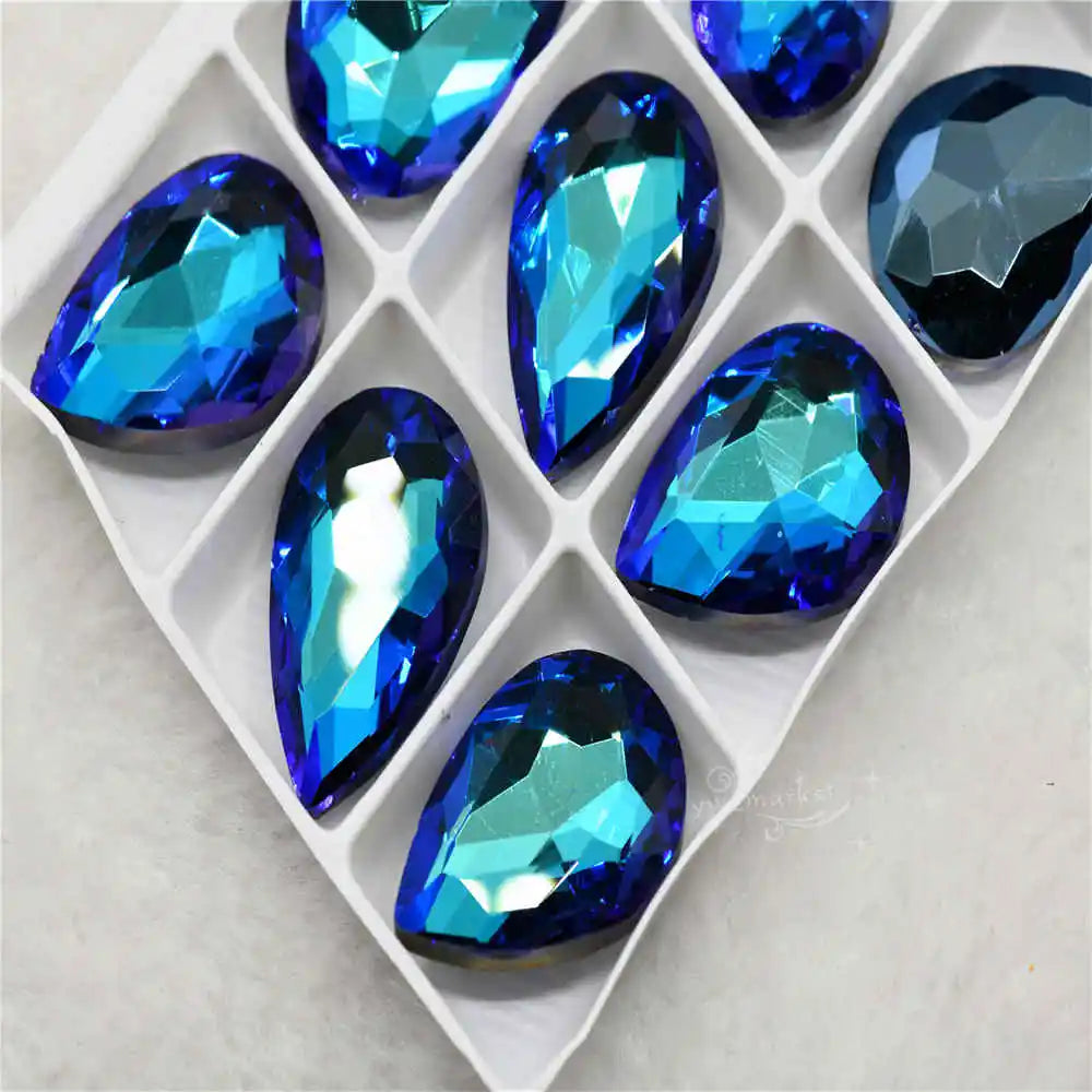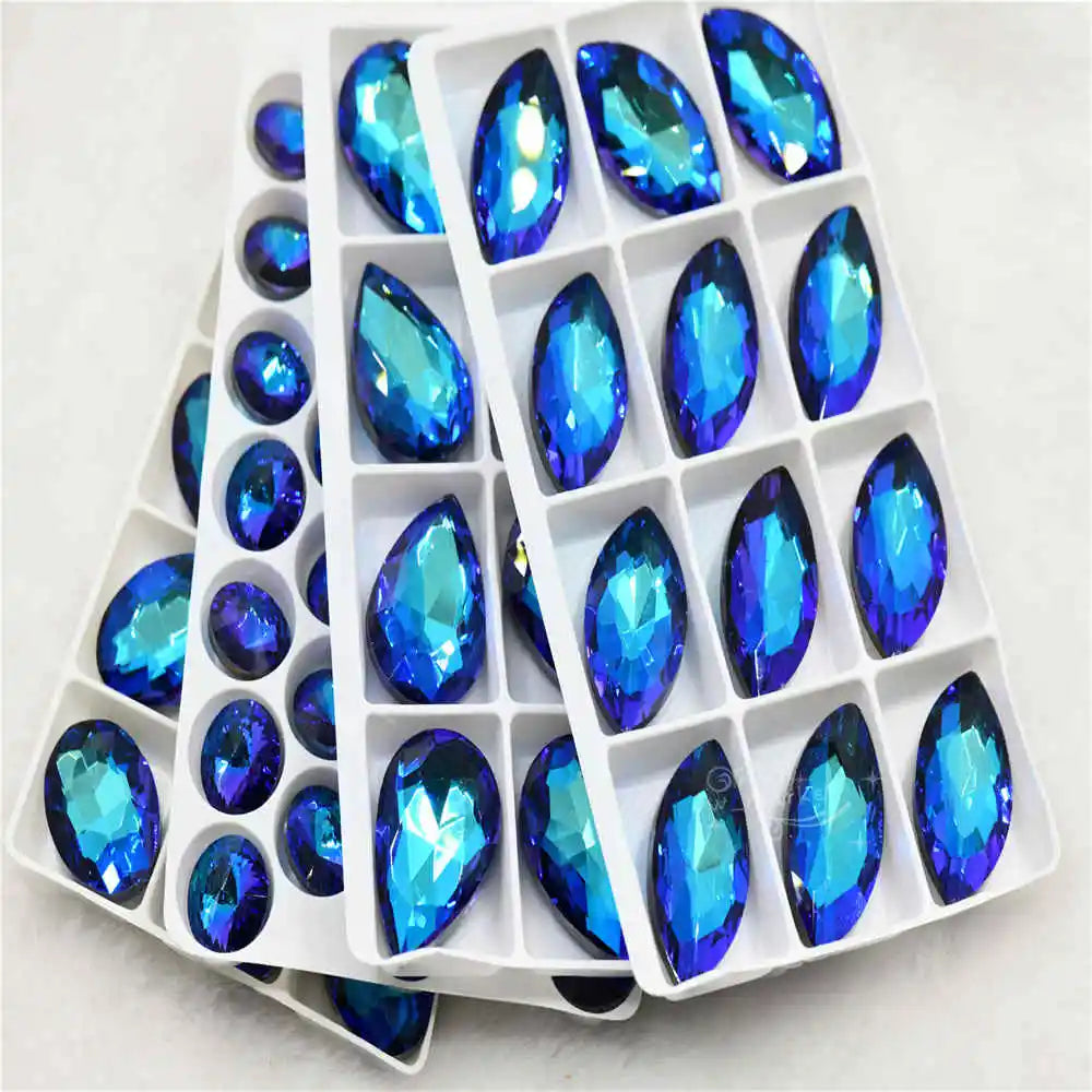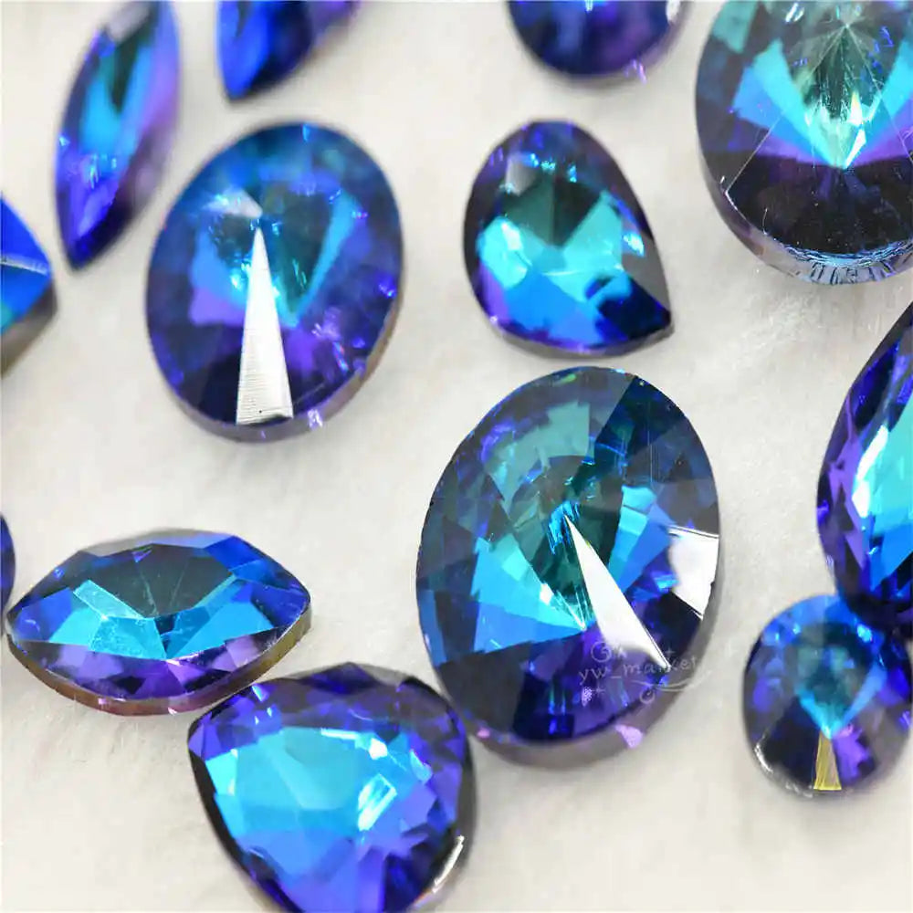 Wholesale Violet Blue Droplet chandelier crystals glass beads Rivoli Navette Glue on jewels making rhinestones